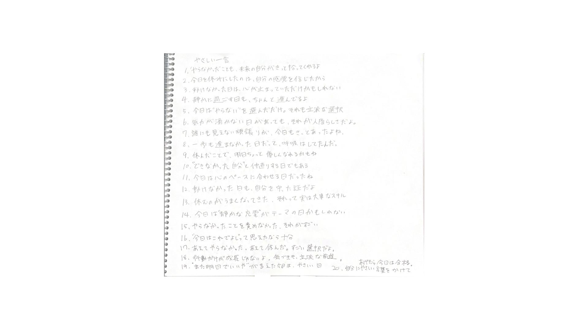 今日の自分にひとこと