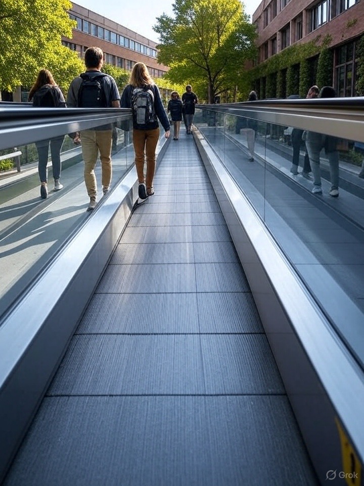 キャンパス内の床を全て動く歩道にすることで、九産大のような広い大学でも楽に移動することが出来ます。