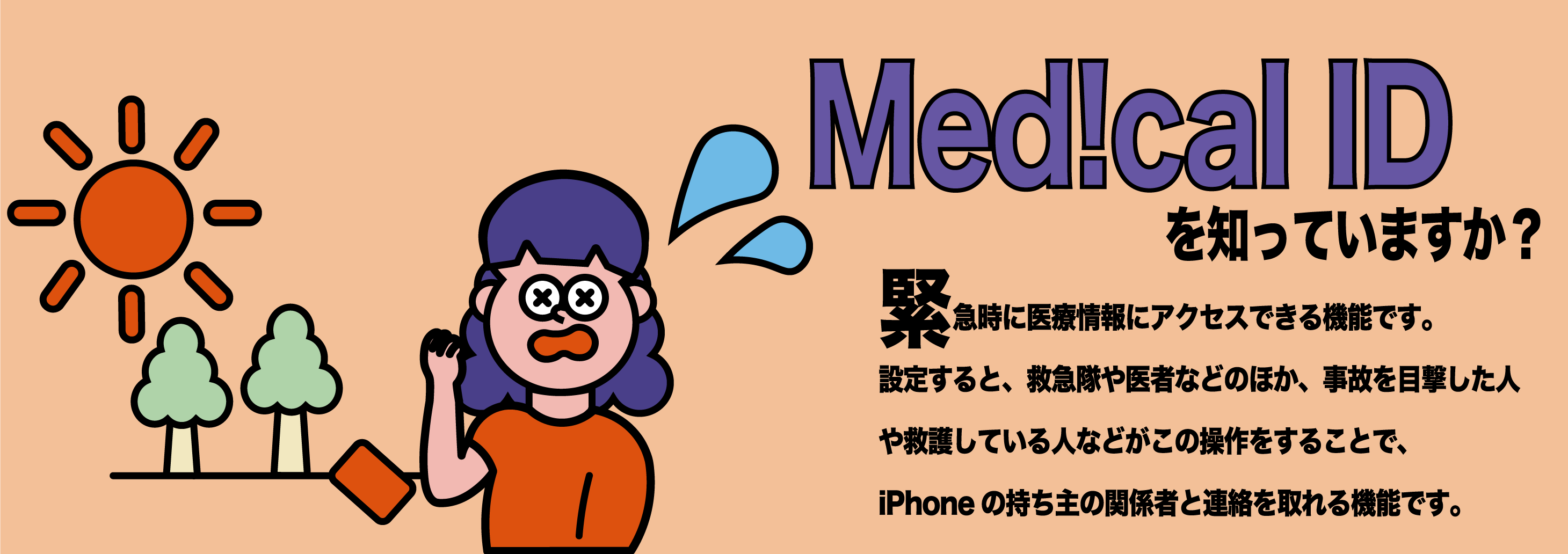 免許証や保険証など、本人は特定できても家族に連絡を取る事ができないものと比べ、メディカルIDは持病の有無に関わらず、災害時や緊急事態の時にも情報を設定しておけば、家族と連絡を取り合うことができ、個人情報を簡単に共有する事ができる。その為、メディカルIDの認知度向上に取り組みたいと考えた。