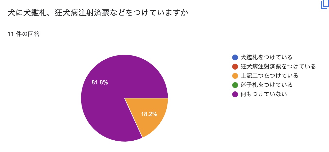 犬のリード・ハーネスや衣服についての抵抗度調査と犬鑑札・注射済票についての意識調査の二つのセッションに分けてアンケートを行った。