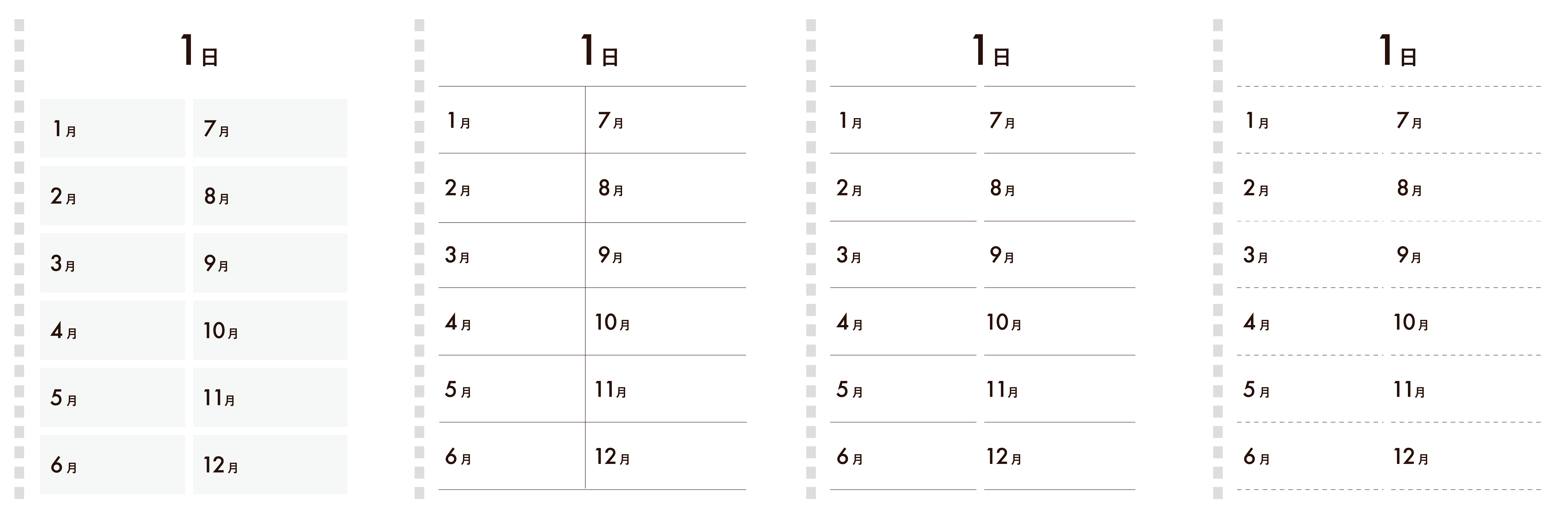 「月・日」ではなく「日・月」と逆に1日の12ヶ月を振り返る