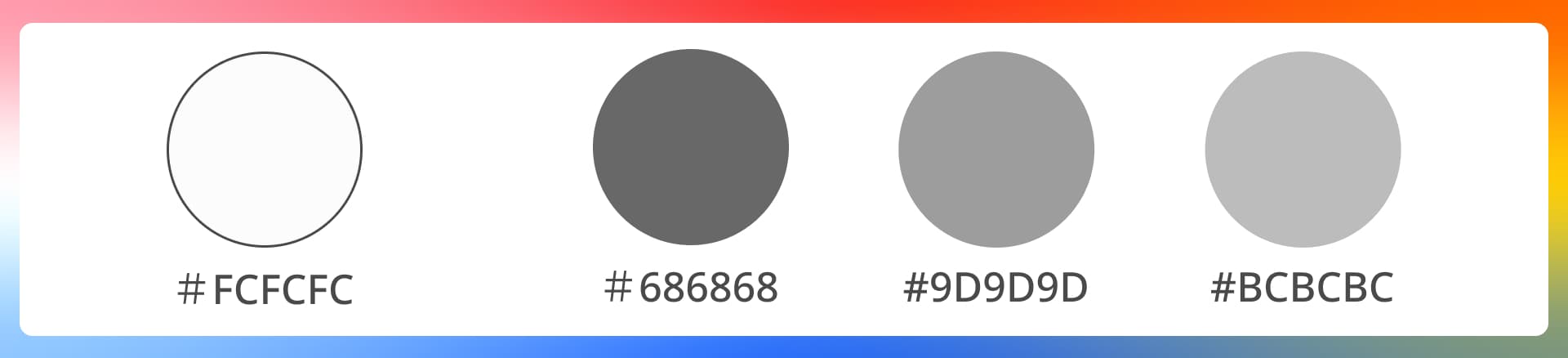 アプリ内で使用する背景色は #FCFCFC、文字色は#686868、#9D9D9D、#BCBCBCの3色を要素に合わせて使用する。