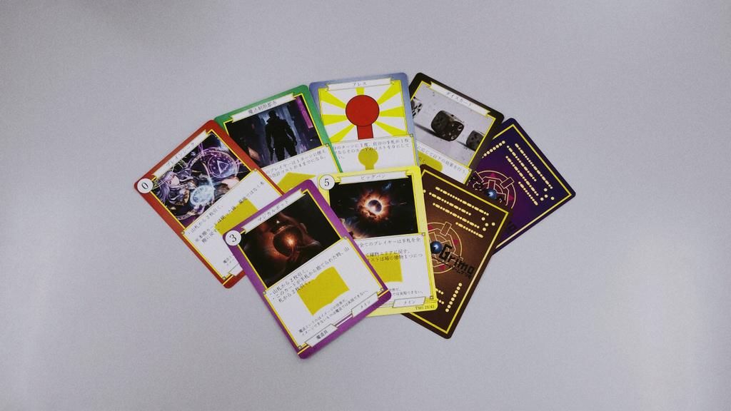 - 対戦相手がいない•••ポケモンカード、デュエル・マスターズといった各プレイヤーが一つずつ山札を持つタイプではなく、全員で共有の山札にすることで人数さえ揃えばこれ一つで誰でも遊べるタイプにする