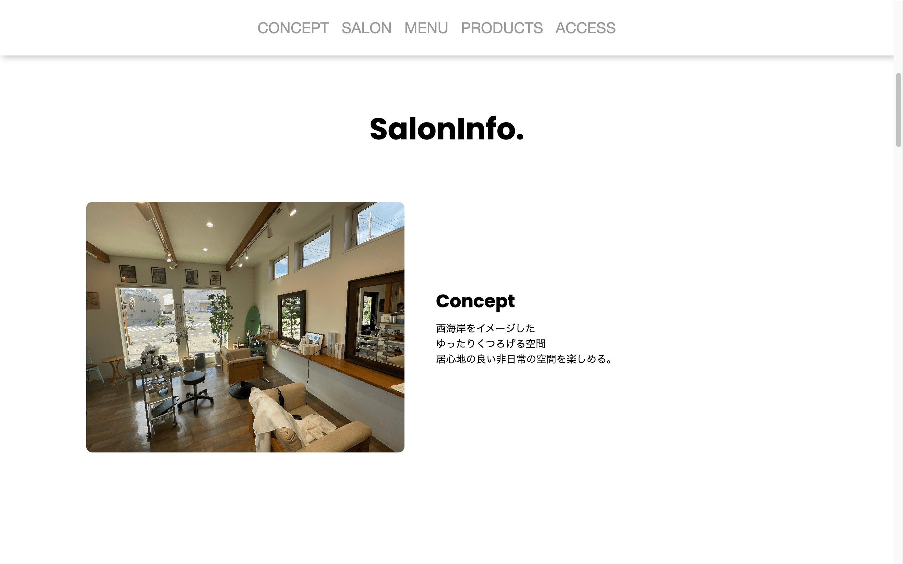 - 実際にWebサイトを見て来客されるお客さんは、若年層の方々が多いと考えて必要以上に文字を増やしたりせずに、シンプルにまとめることにした。