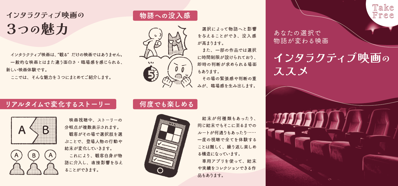 まず「インタラクティブ映画」とは「視聴者が人物の行動やルートを選択でき、物語に介入できる」映画です。