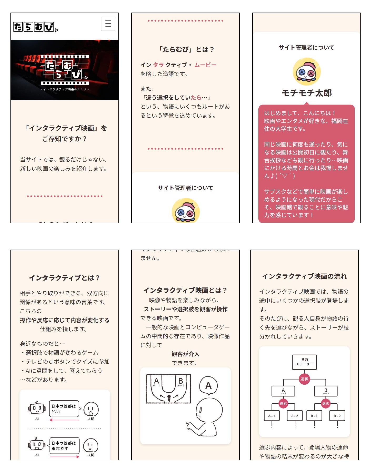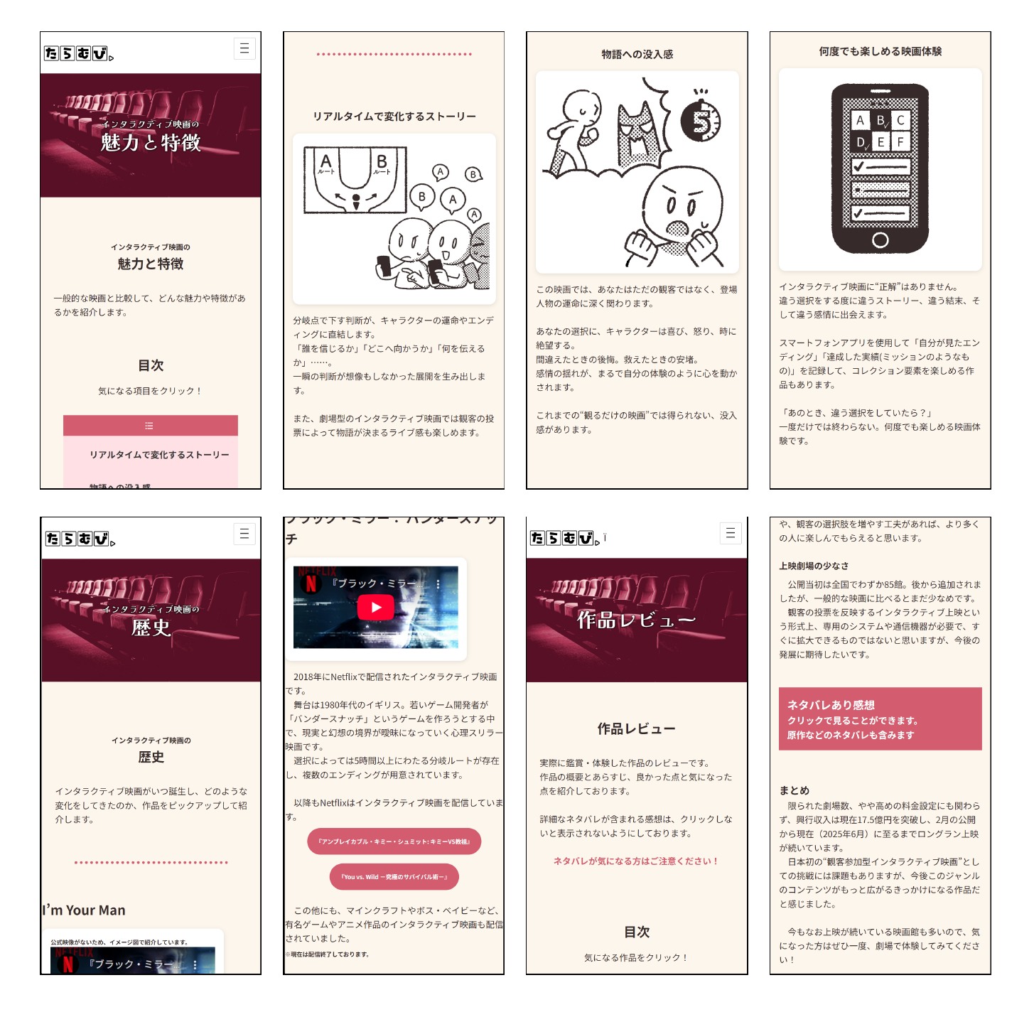 - ページ構成では、映画の仕組みや魅力を段階的に紹介し、初めてこのジャンルに触れる人にも理解しやすい流れを意識した。
