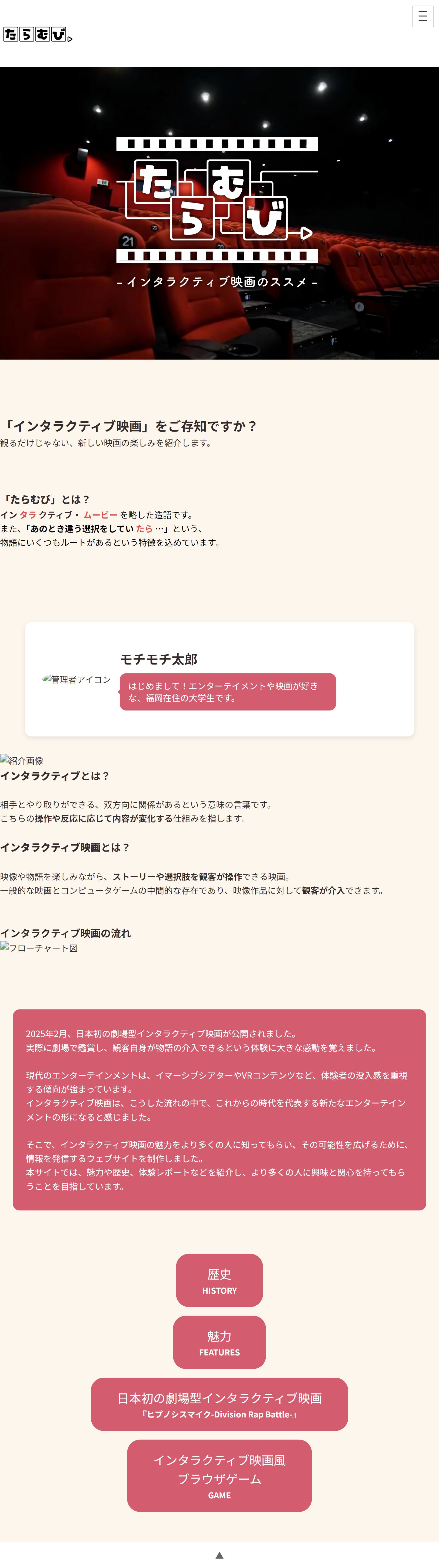 本サイトでは、インタラクティブ映画の仕組みやレビューを紹介し、「知らない人でも分かりやすい」「手軽に触れられる」Webサイトを目指します。