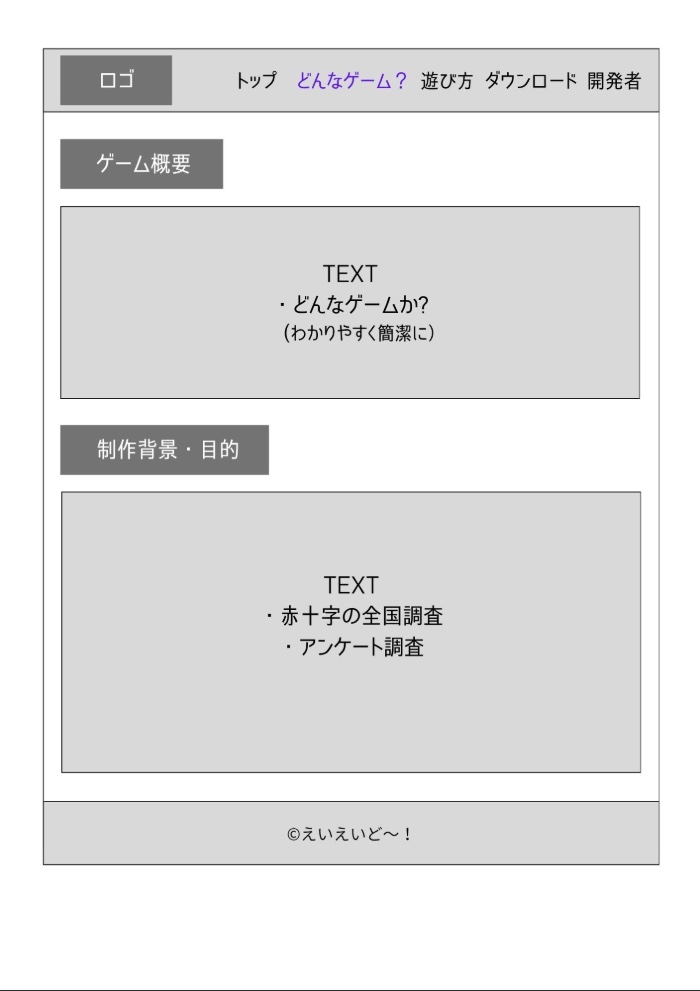 ゲーム名「えいえいど〜!」は、応急手当を意味する英語 First aid(ファーストエイド) の「エイド(aid)」と、掛け声「えいえいお〜!」を組み合わせた造語である。応援のような明るい印象と「aid(助ける)」の意味を重ね、前向きに応急処置を学ぶイメージを込めて名づけた。