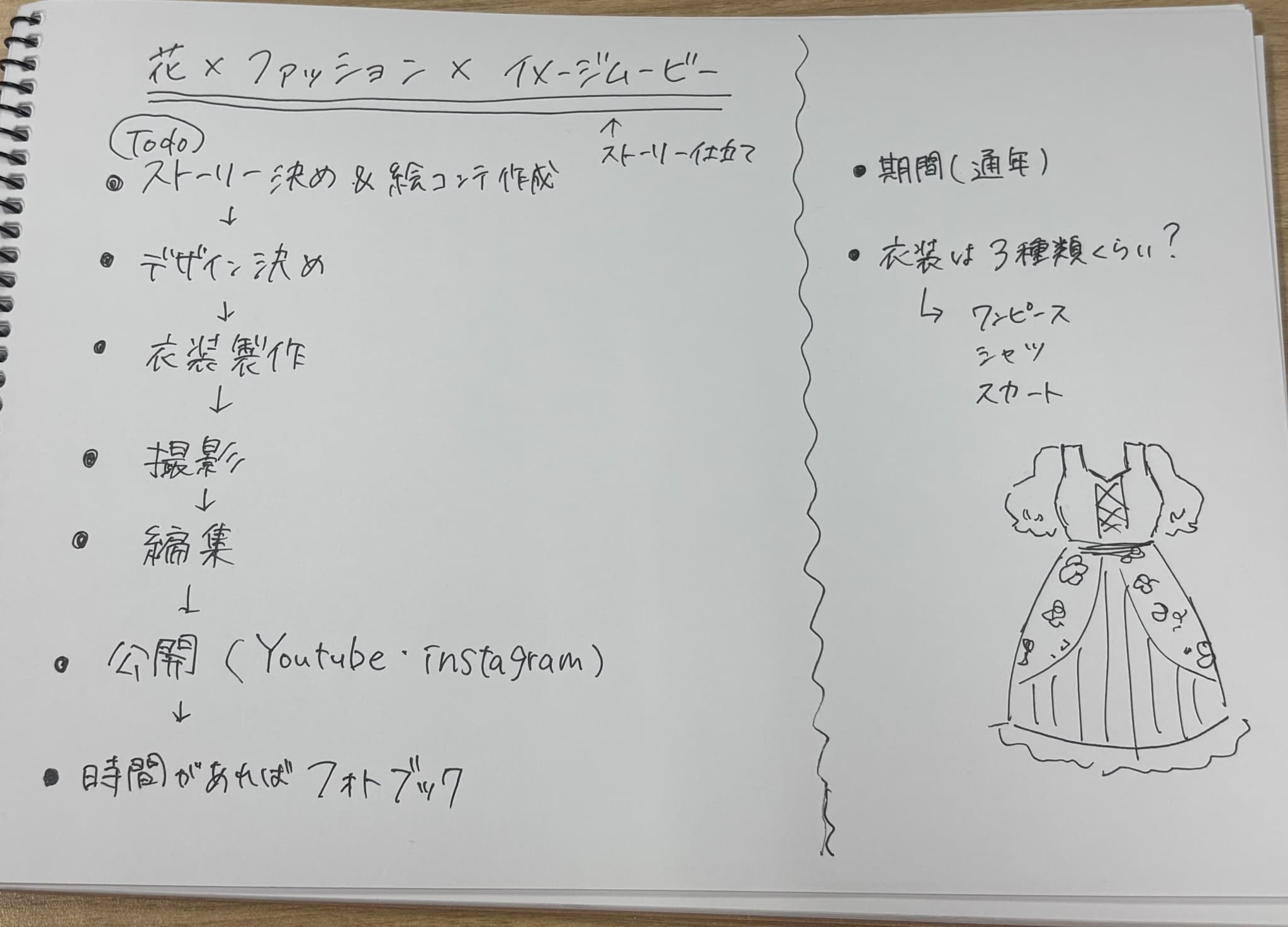 - 制作の方向がある程度決まり、衣装イメージが見えてきたので先に衣装制作を行う