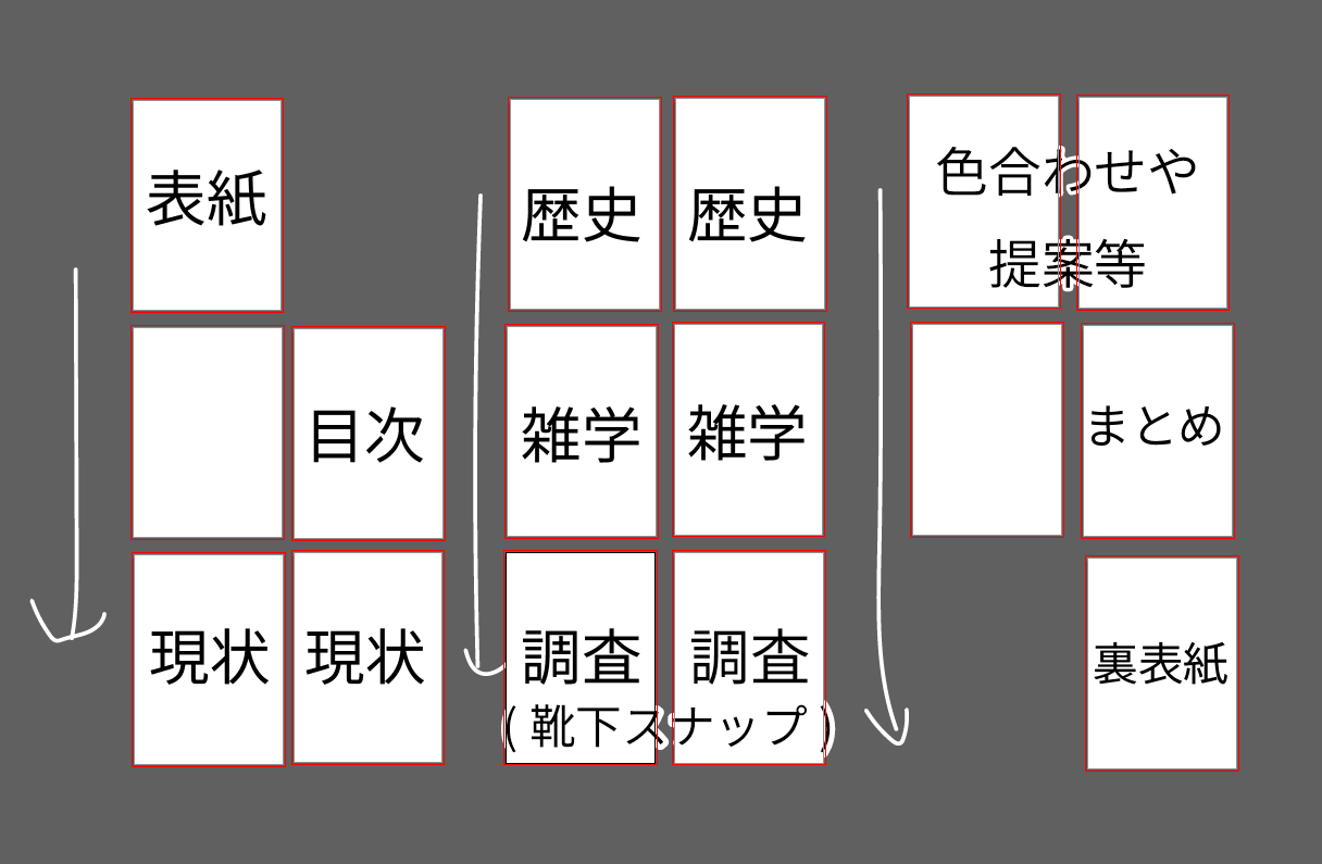 歴史や雑学をどうするか、多少のイラスト作成してまとめる、なんとなくの構成等