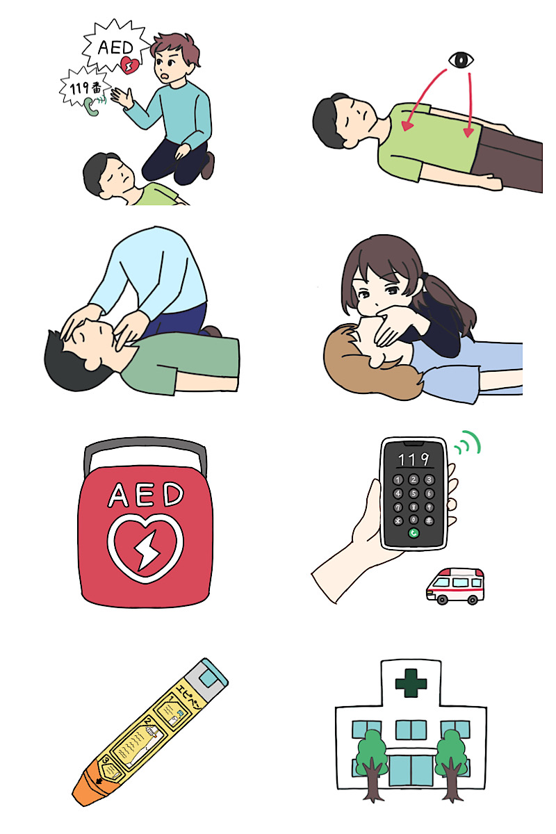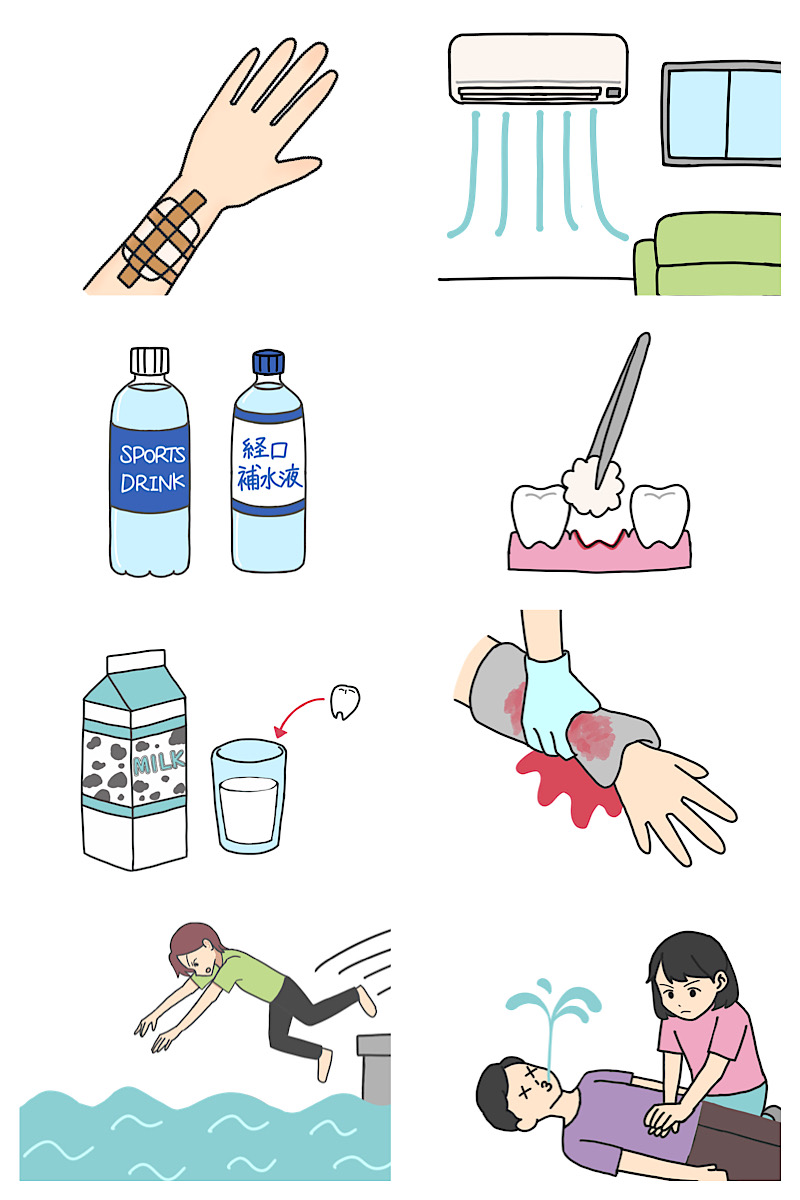応急手当の基本的な知識や手順を楽しく学べる。