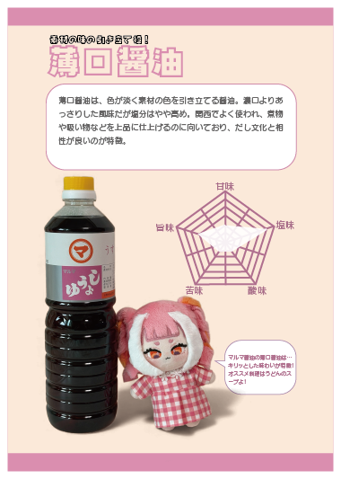 醤油のイメージキャラクターぬいぐるみ&マルマ醤油紹介リーフレット
