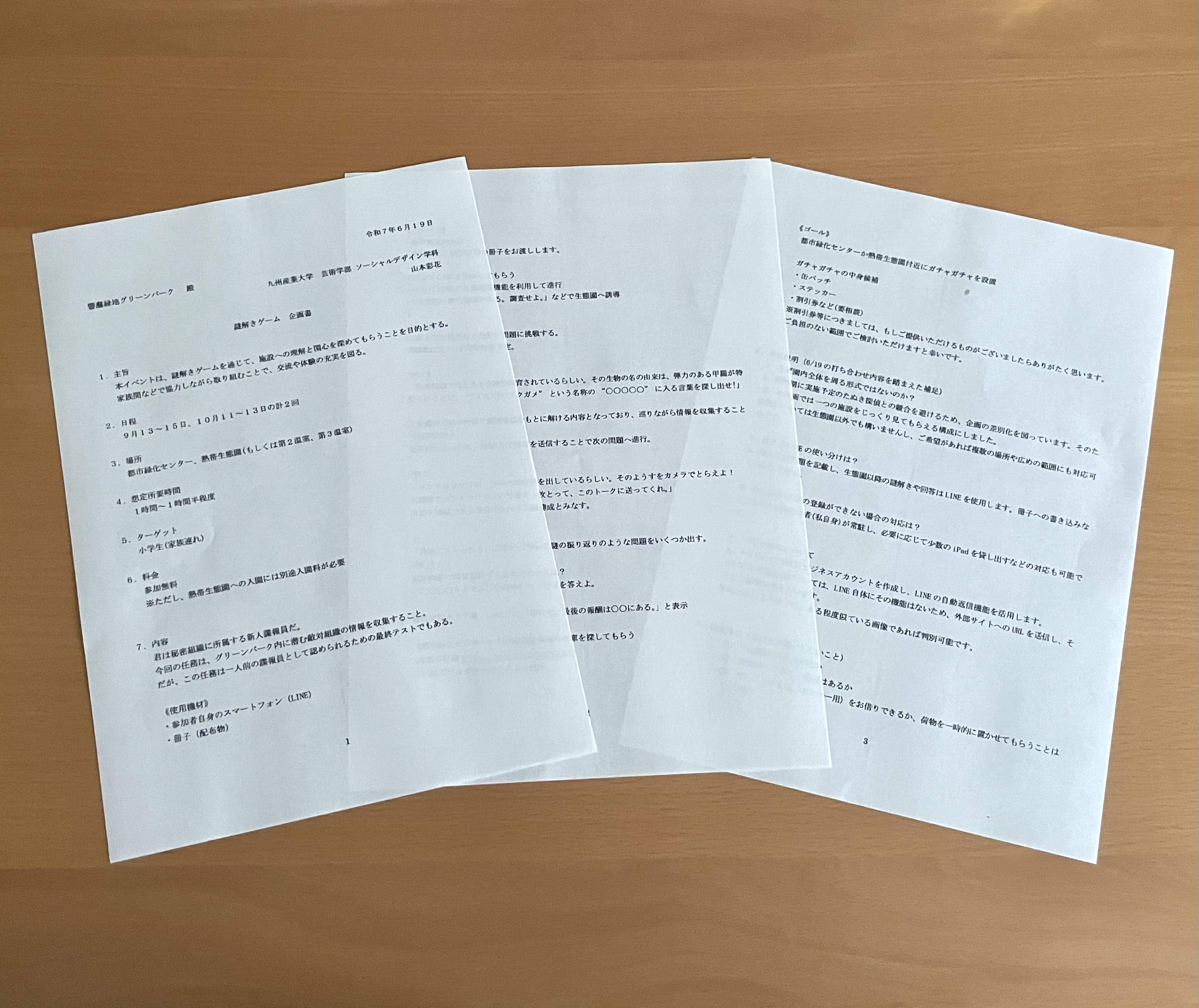 響灘緑地グリーンパークという特色ある空間を舞台に、参加者が物語の主人公として謎解きに挑む体験型イベントを提案する。来園者に新たな楽しみ方を提供するとともに、園内への関心と来園者同士の交流を促進する。これにより、グリーンパークの新たな魅力発信や周辺施設の利用促進につなげることを目的とする。