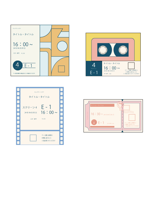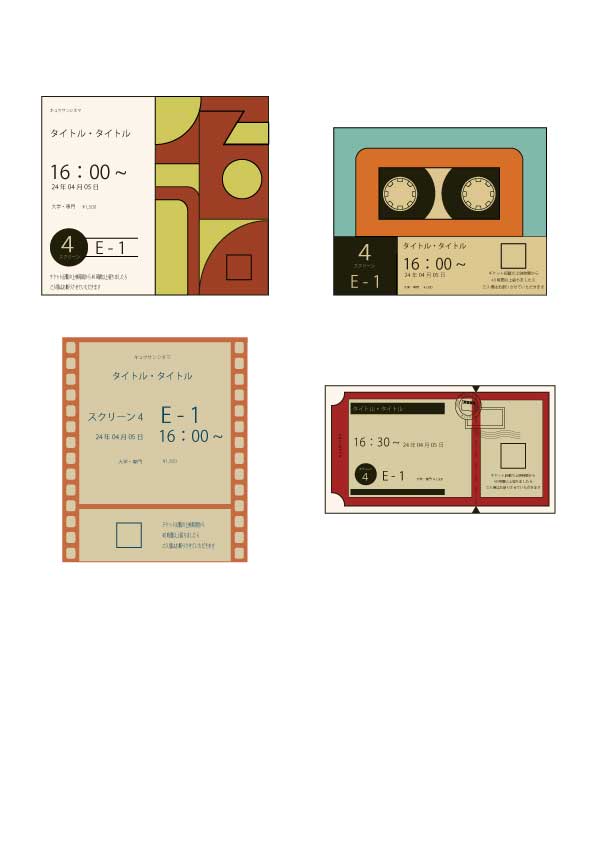 映画のチケットのテンプレートを4案×色違い4種 計16種