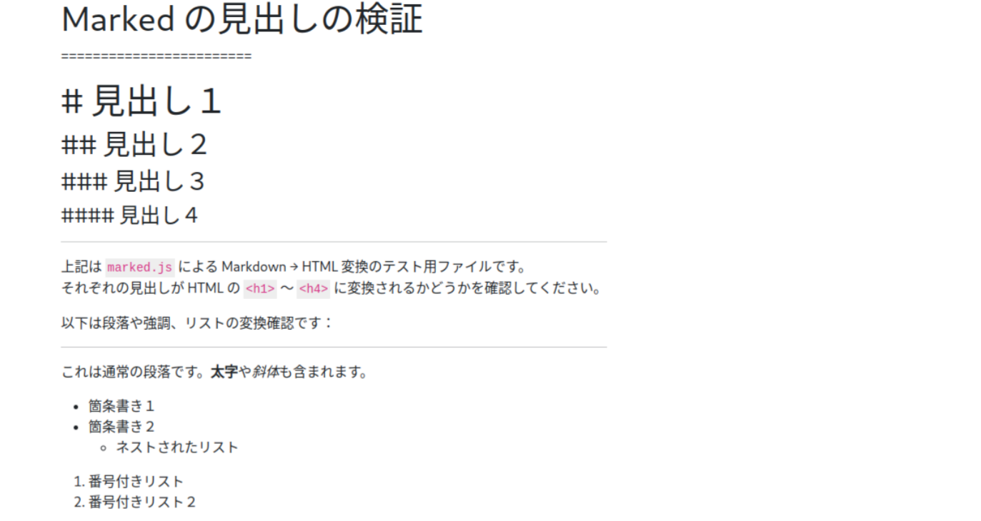 - ✅ MarkDown文書をHTMLに変換する機能