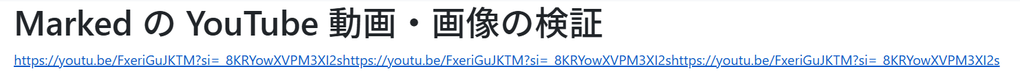 YouTubeリンクをMDファイルに貼り付けHTMLに変換したところ、リンクの文字列がそのまま表示された。学科サイトのように動画枠とサムネイルを表示し、そのまま再生できるようにしたい。