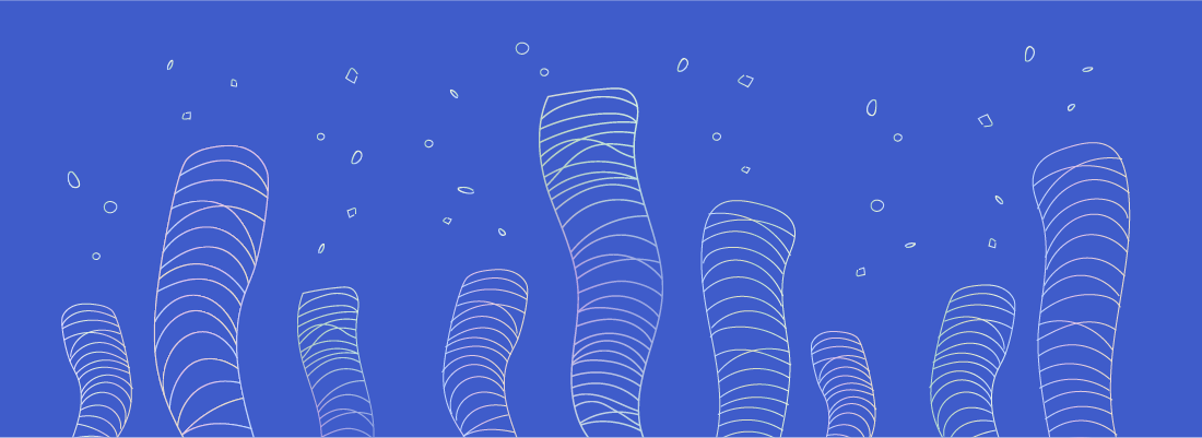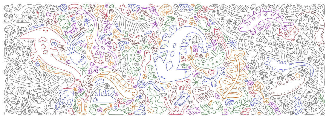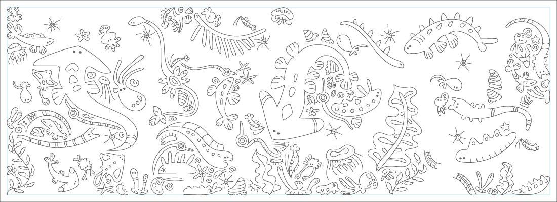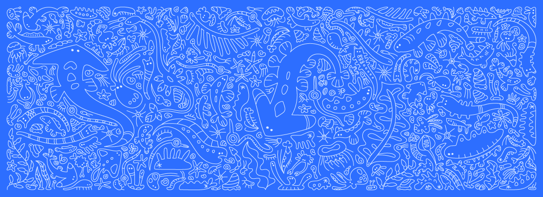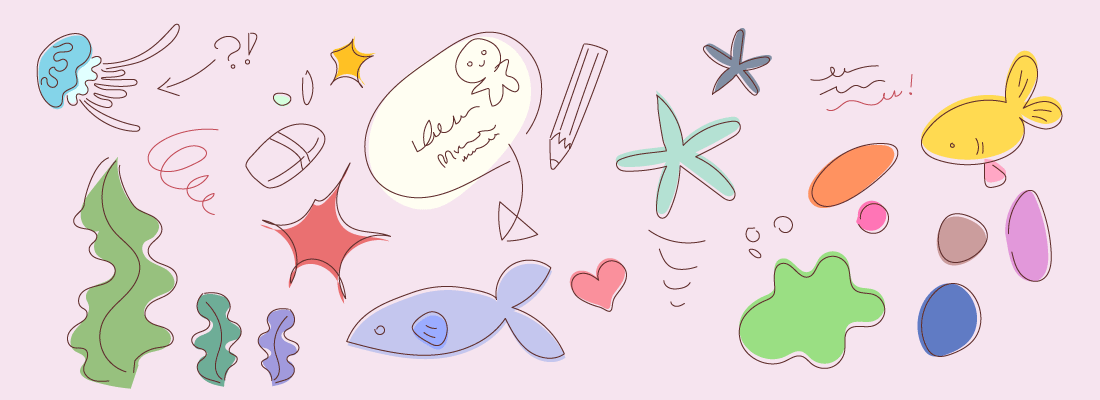 - 海洋生物から着想を得た架空の生物のイラストレーションを使用する。
