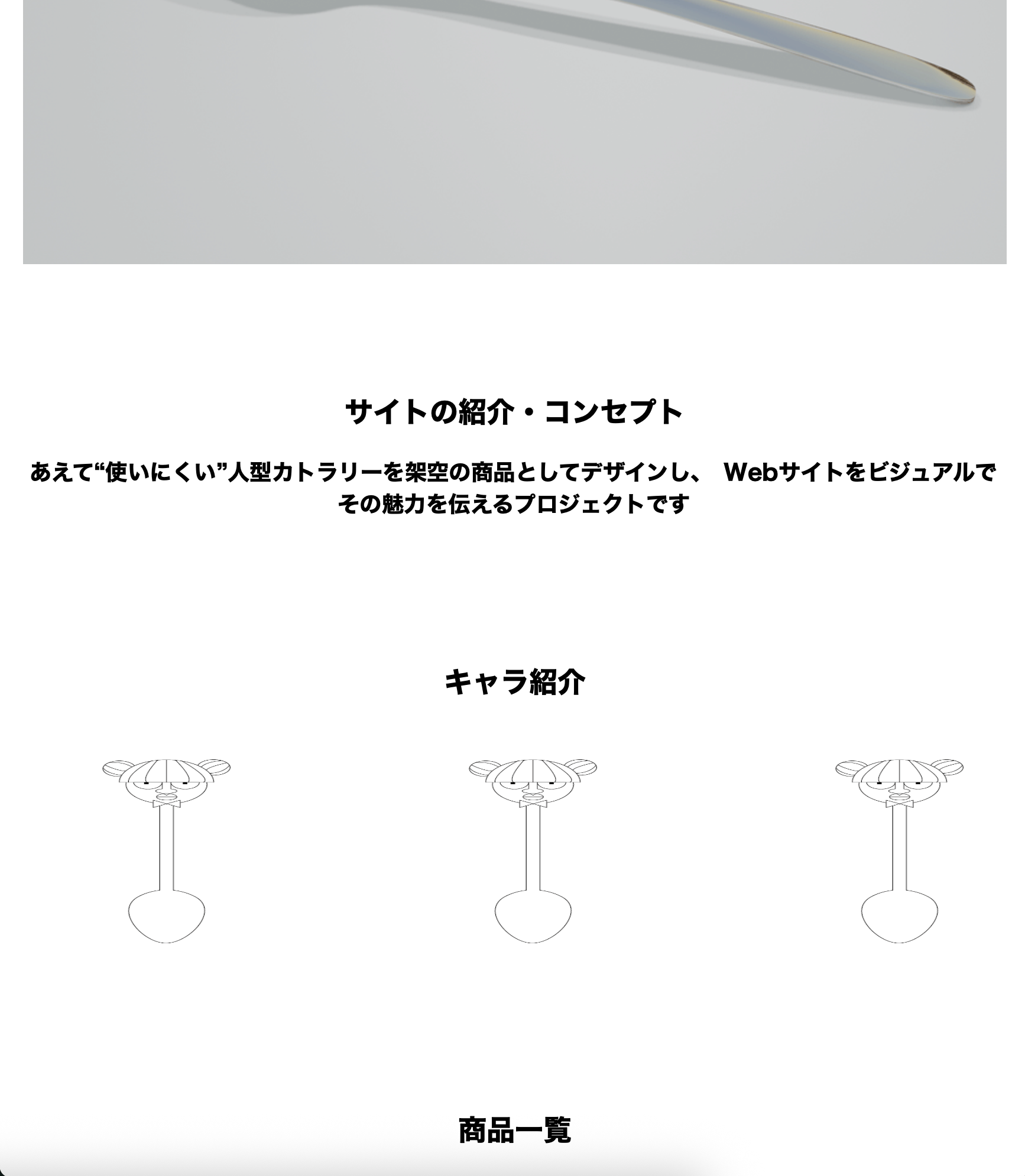 「架空の人型カトラリー」を架空の商品としてデザインしおもしろおかしくWEBサイトに掲載し、その魅力を伝えるプロジェクト。