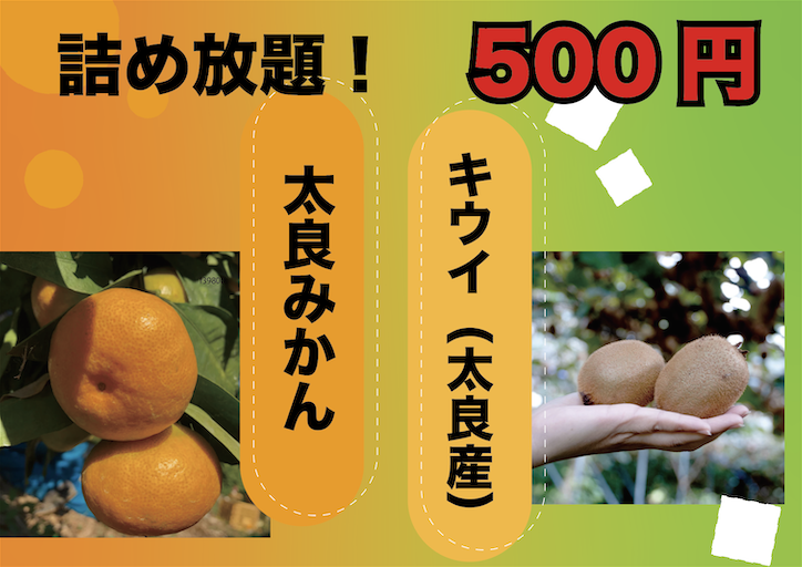 佐賀県太良町の家族農園で育てたみかんをネット販売しているが、リピーター数はここ2 年で横ばいのままである。また、太良町などみかん需要の高い主要産地ではみかんを食べる機会が少ないという声を多く聞いたことや、スーパーを介すと価格が上がる現状から、消費者と直接つながれる販促イベントの必要性を感じた。