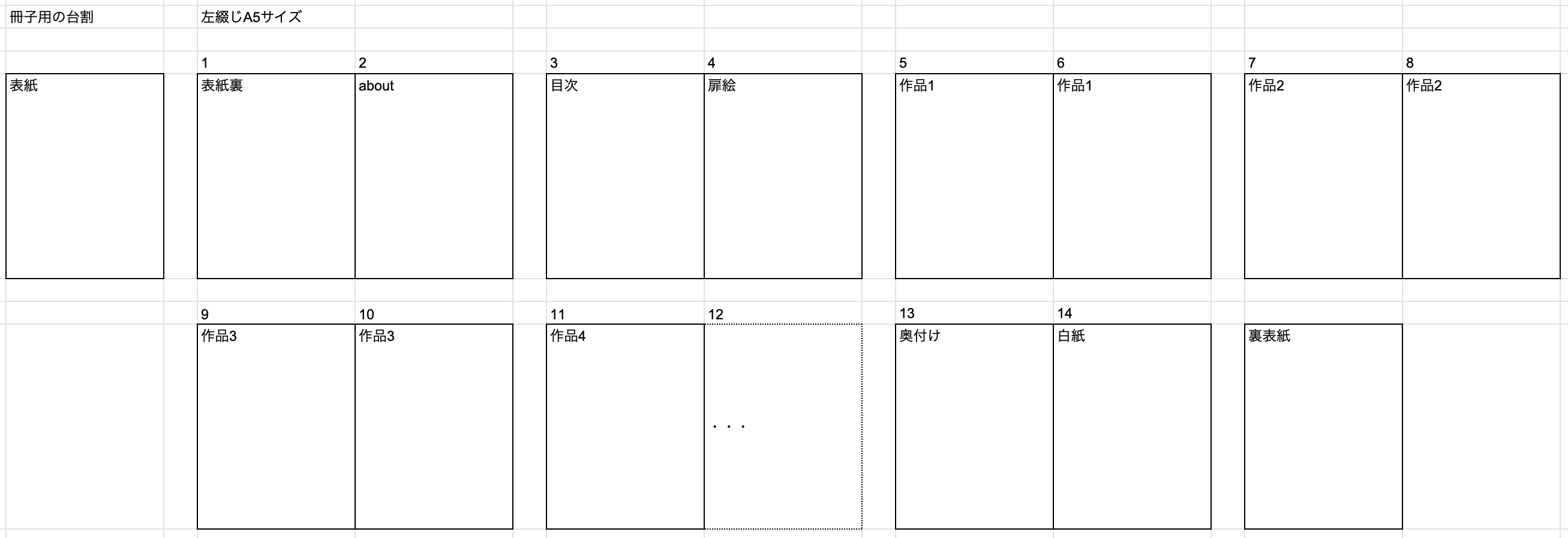 ▼冊子の台割(完成はA5サイズの予定)