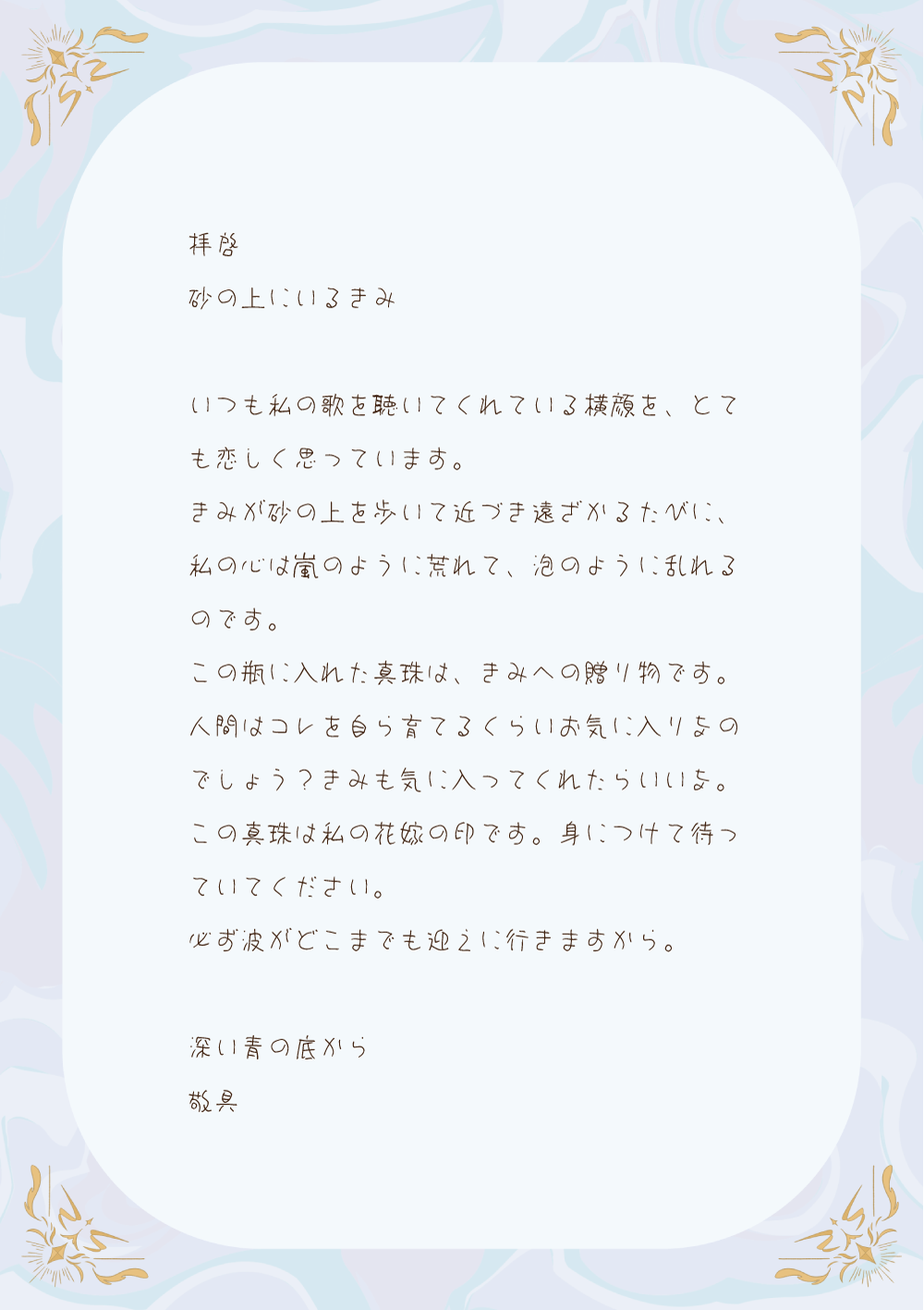 フォントを検討した。手紙の部分は手書きフォント