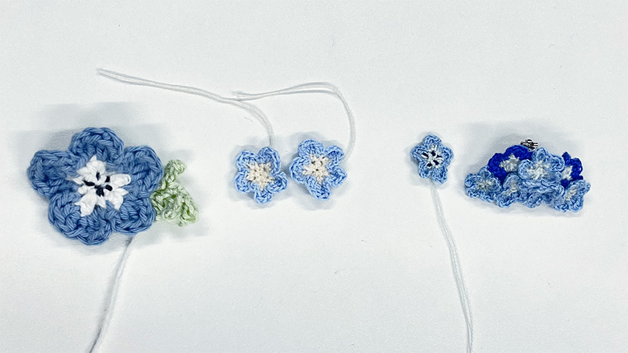 左2:刺繍糸2本取りで試作(花芯が潰れてしまった)