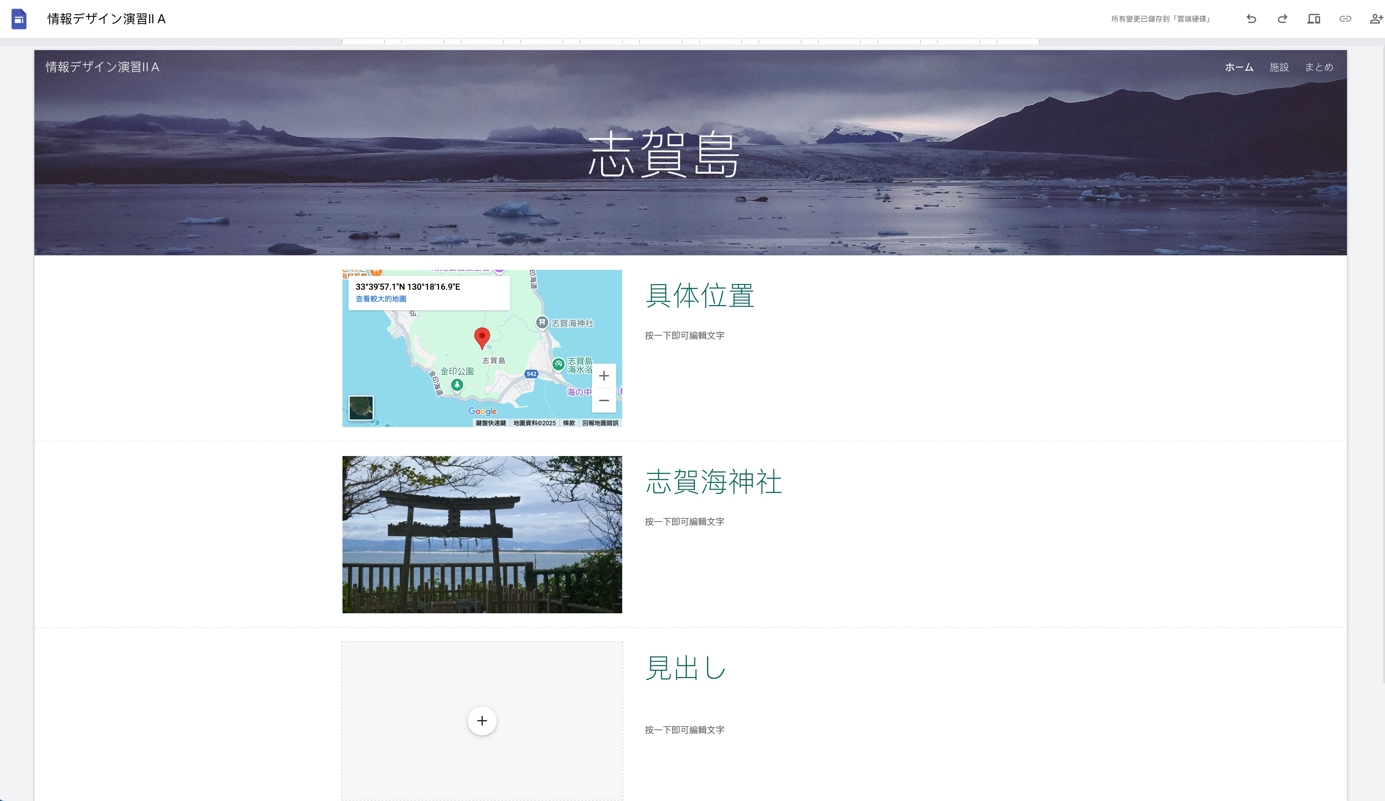 - 3. Googleサイトを使って、トップページに大きな背景画像を設定し、その下に情報をカテゴリーごとにまとめる
