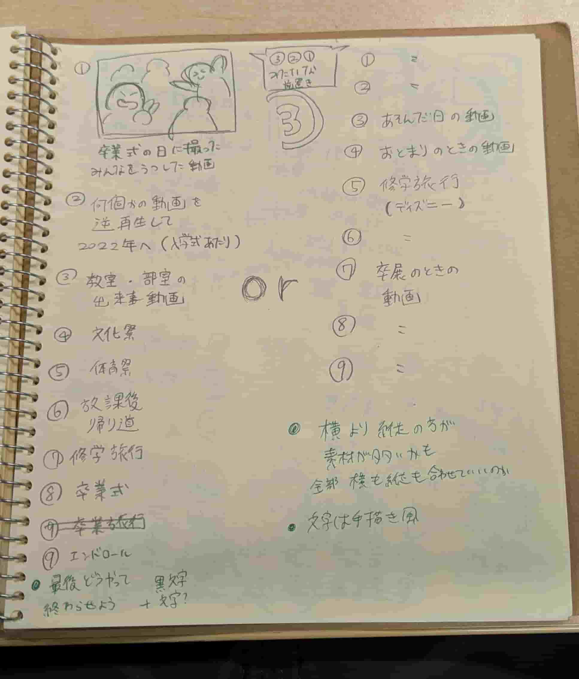 - 最初の卒業式のシーンを短くしてエンドロール部分に卒業式の動画を詰め込む