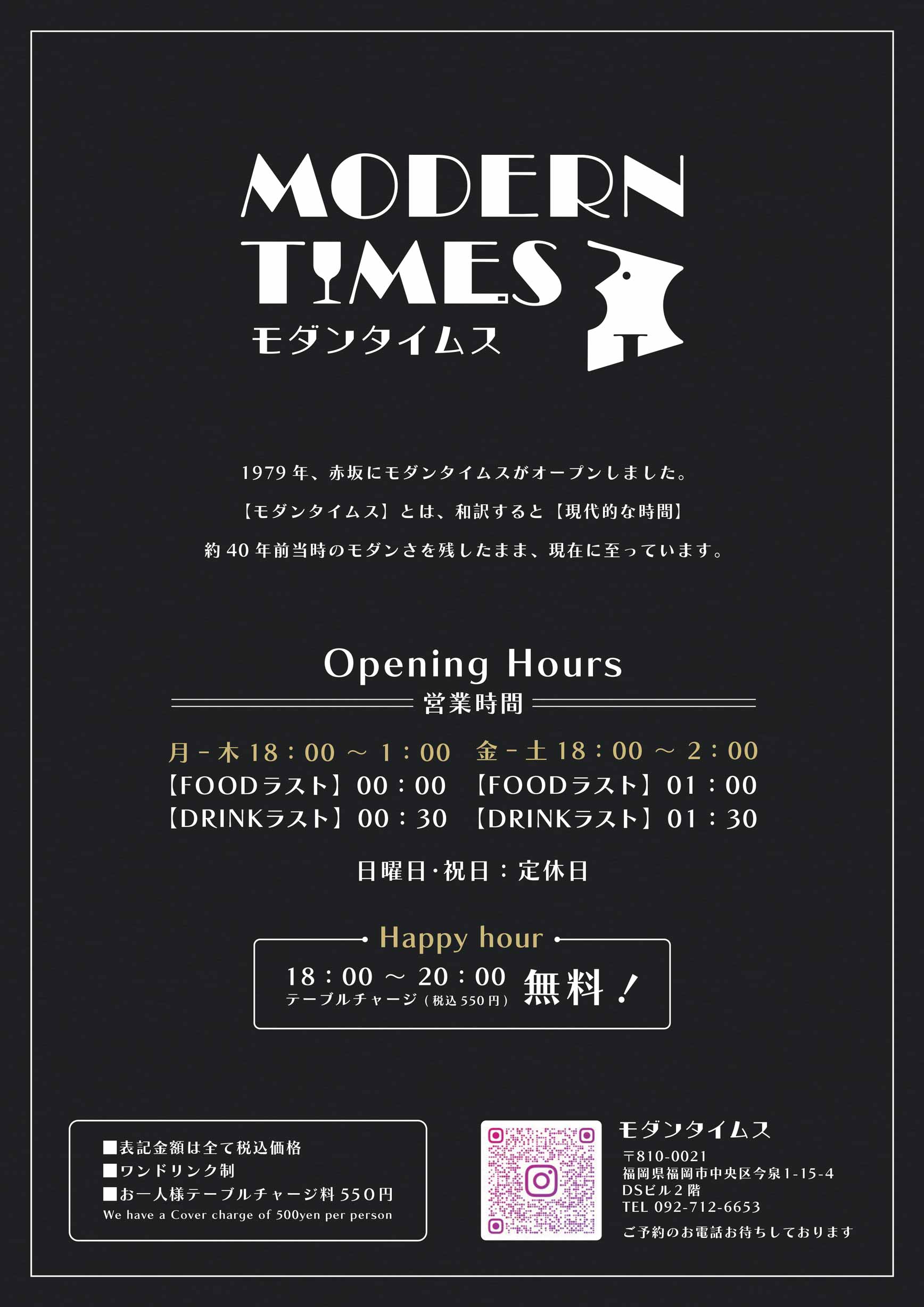福岡市中央区今泉に店舗を構える『MODERN TIMES』のリニューアルを手伝うことになり、メニューの変更やインテリアの配置の見直しを行う。