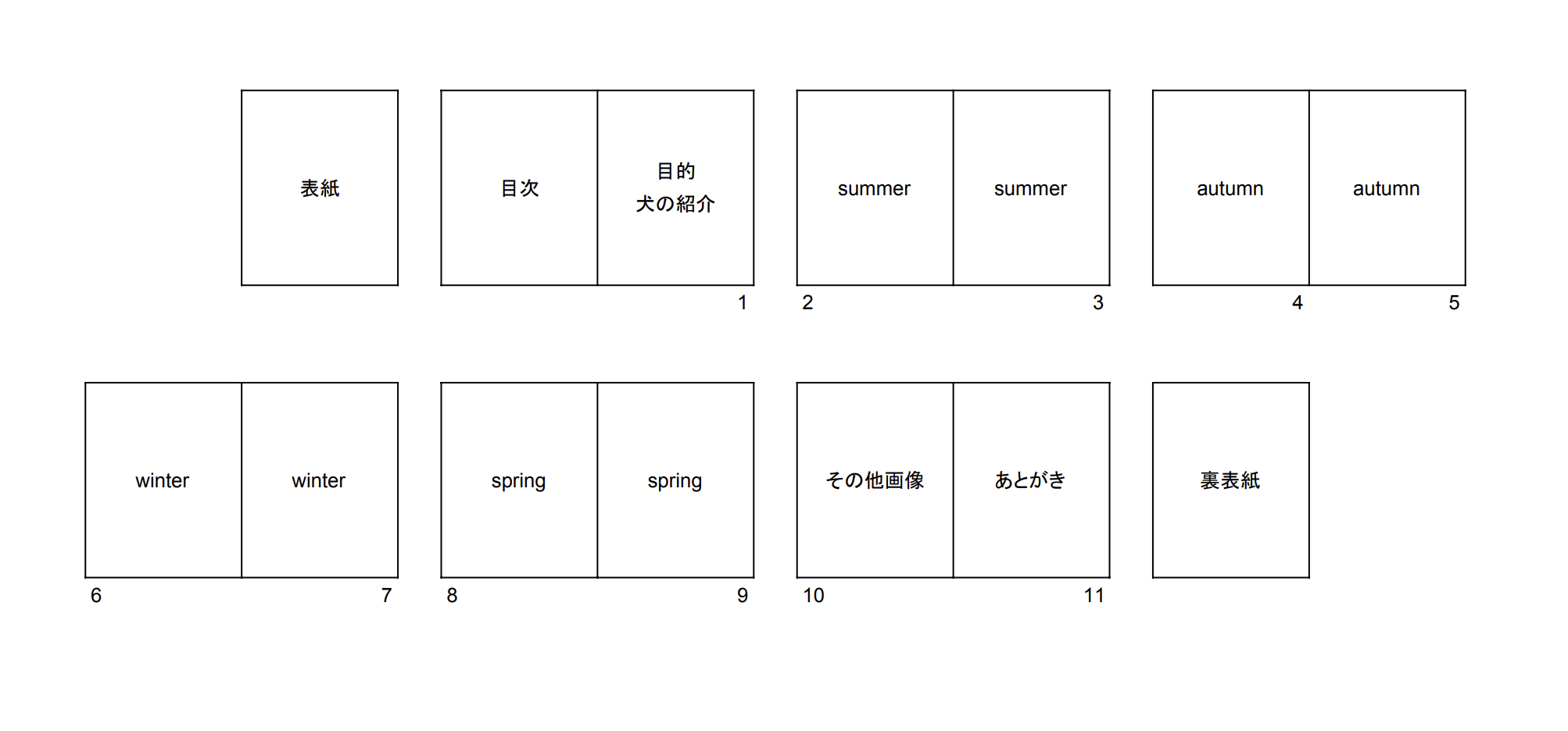 ここ1年の犬の写真を季節別に記録したpdf