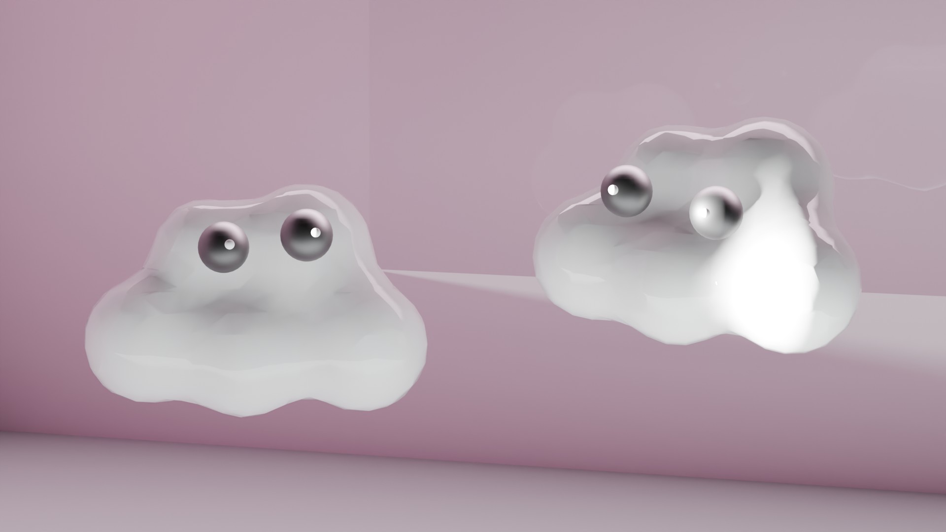 ふわふわしてる雲に目をつけて生き物みたいにしました