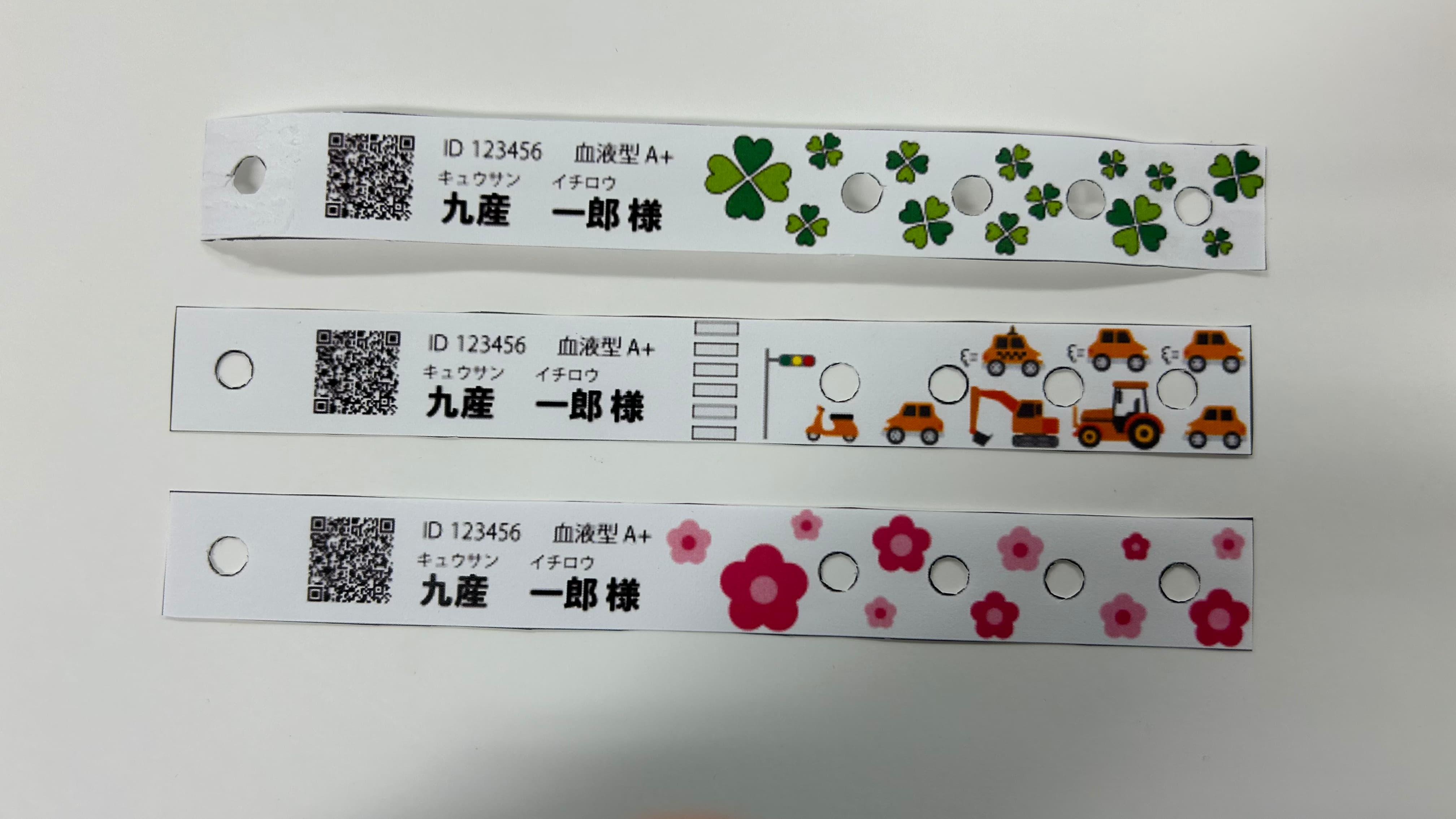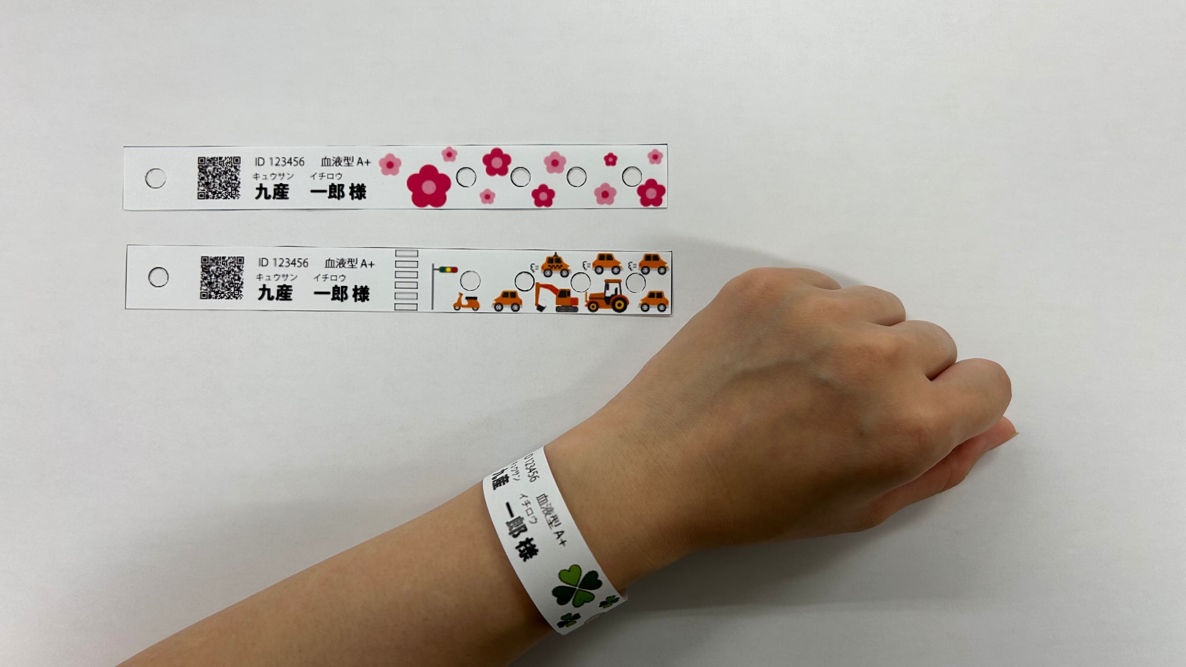 ※医療用リストバンドとは・・・病院に入院する際に手首や足首につけるリストバンドで、患者さんの名前、生年月日、性別、入院している病棟などが記載してある。リストバンドをつけることで、手術や検査、点滴などの時に患者さんが喋れない状況でも患者を識別することができ、誤認を防ぐことができるものだ。