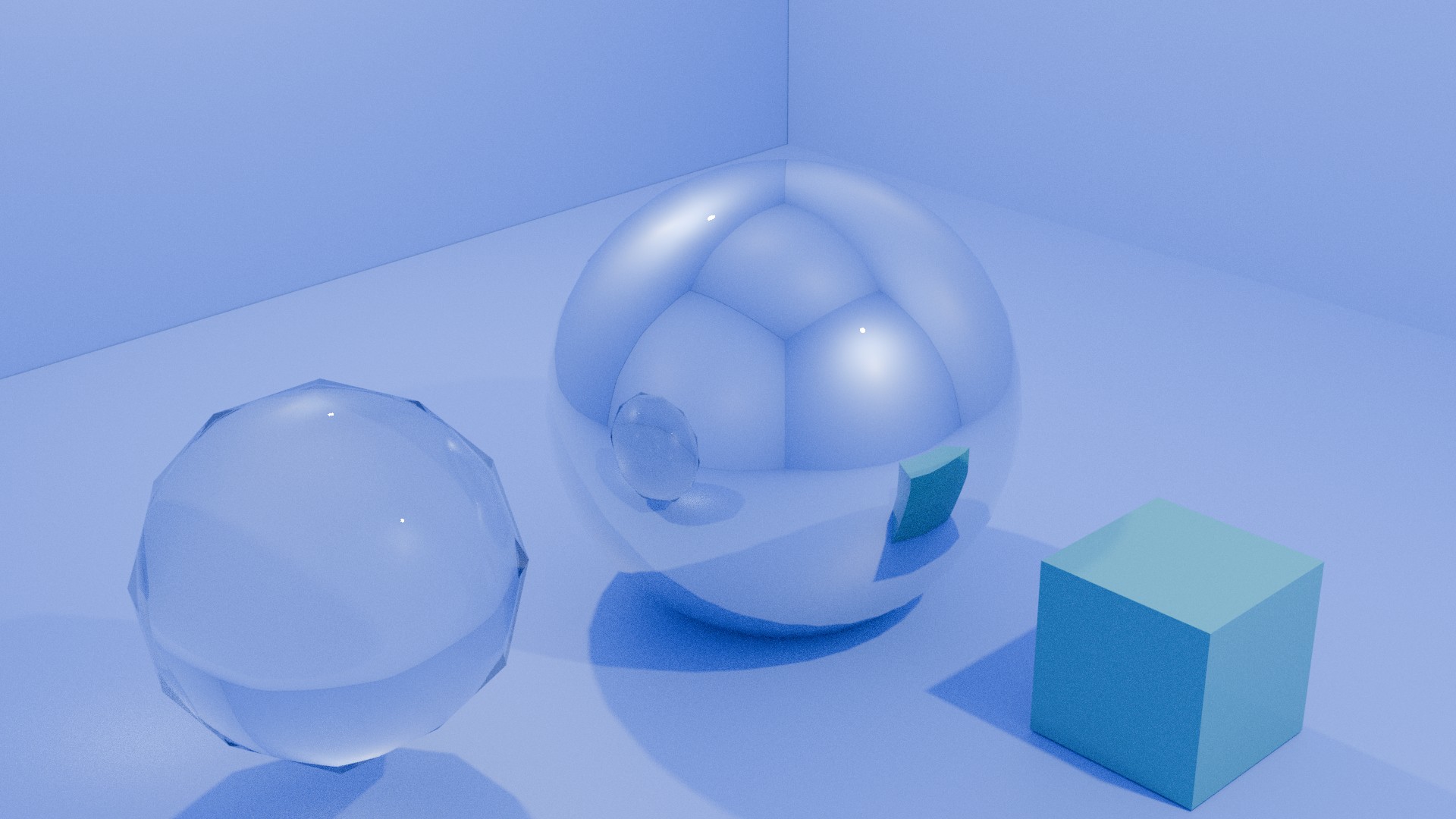 青と緑の光が差し込む家