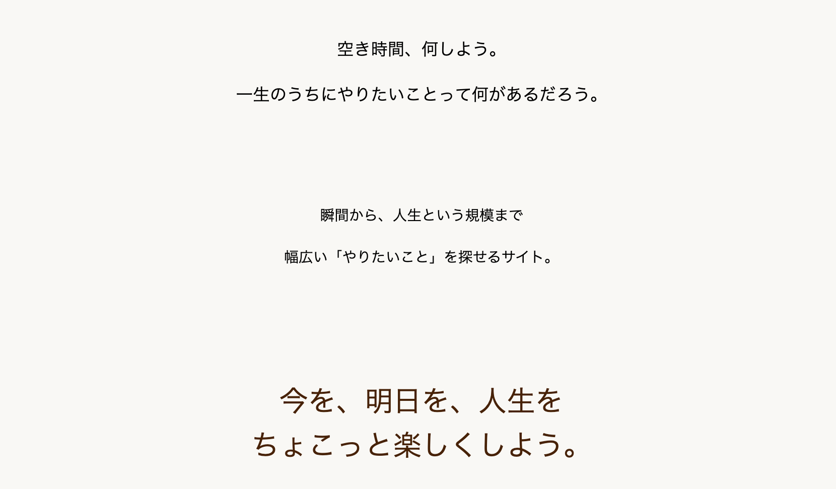 空き時間にやりたいことから人生でやりたいことまで、幅広い"want to do"を探せるサイト。