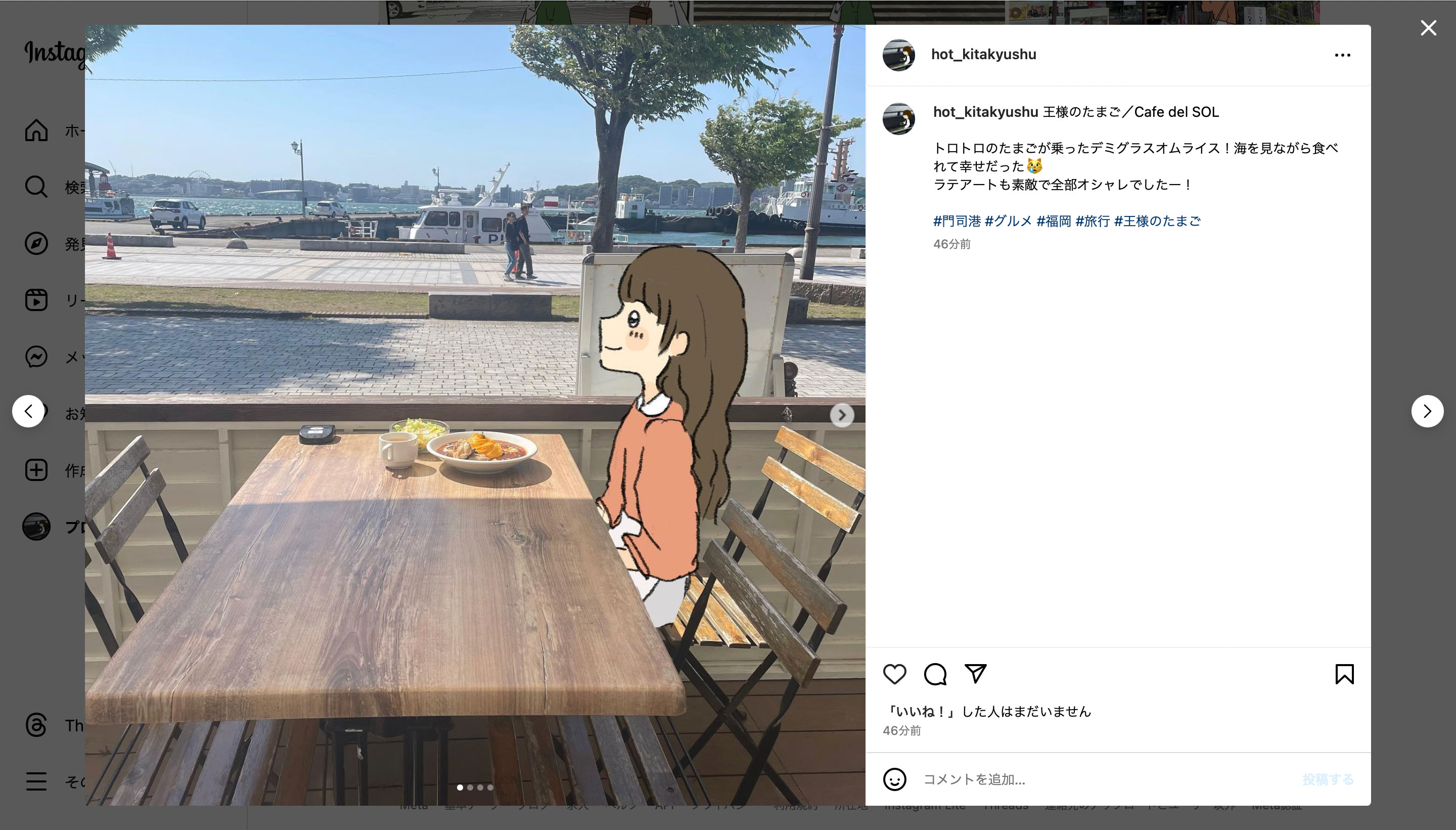 インスタグラムはお店のタグなどを押すと、そのお店の写真が出てくるが、イラストを入れているため目立って見えていた。→目に付く可能性が高い!