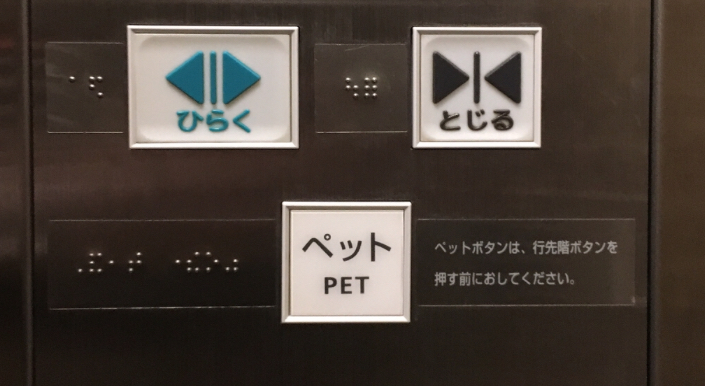 よくマンション内のエレベーターで見かけるペットボタンこのボタンの意味は、【あらかじめ押しておくと動物が苦手な人、アレルギーがある人がペットと同乗してしまうトラブルを防ぐ効果のあるボタン】らしいのですが、意味が分かったところで納得できない。これではペットを連れた人が最初に乗っているケースしか想定されておらず、ペットが苦手な人が最初に乗り込んでくるケースにわ対応できない。しかもよく見ると『ペットボタンは行き先階ボタンを押す前に押してください』と注意書きがある。なぜ開閉ボタンより下に設置したのか。。。