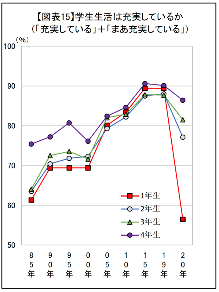 特に1年生では56.5%とこの設問を設けた83年以降最低値となった。