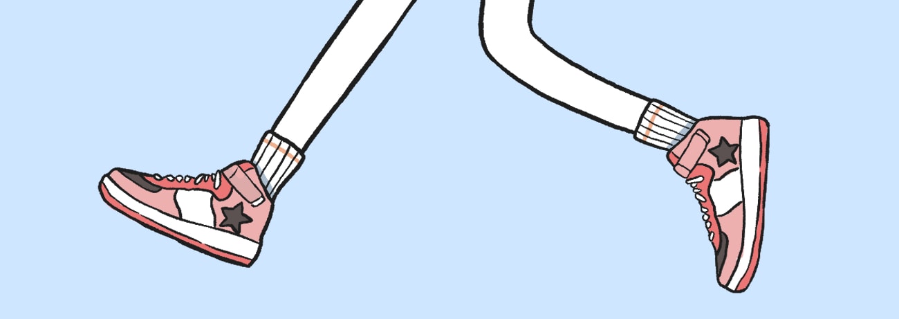 - 個性を出すために好きなスニーカーを履いた学生のイメージをイラストレーションを用いて表現