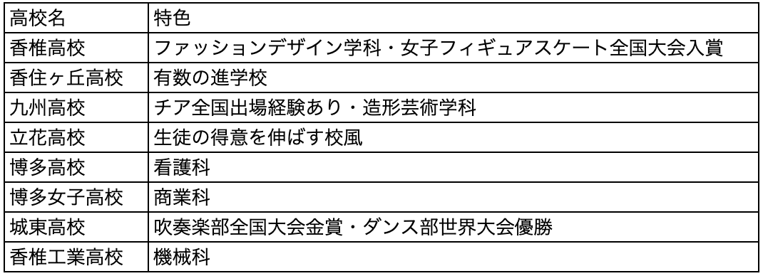 香椎高校香住丘高校九州高校立花高校博多高校博多女子高校城東高校香椎工業高校