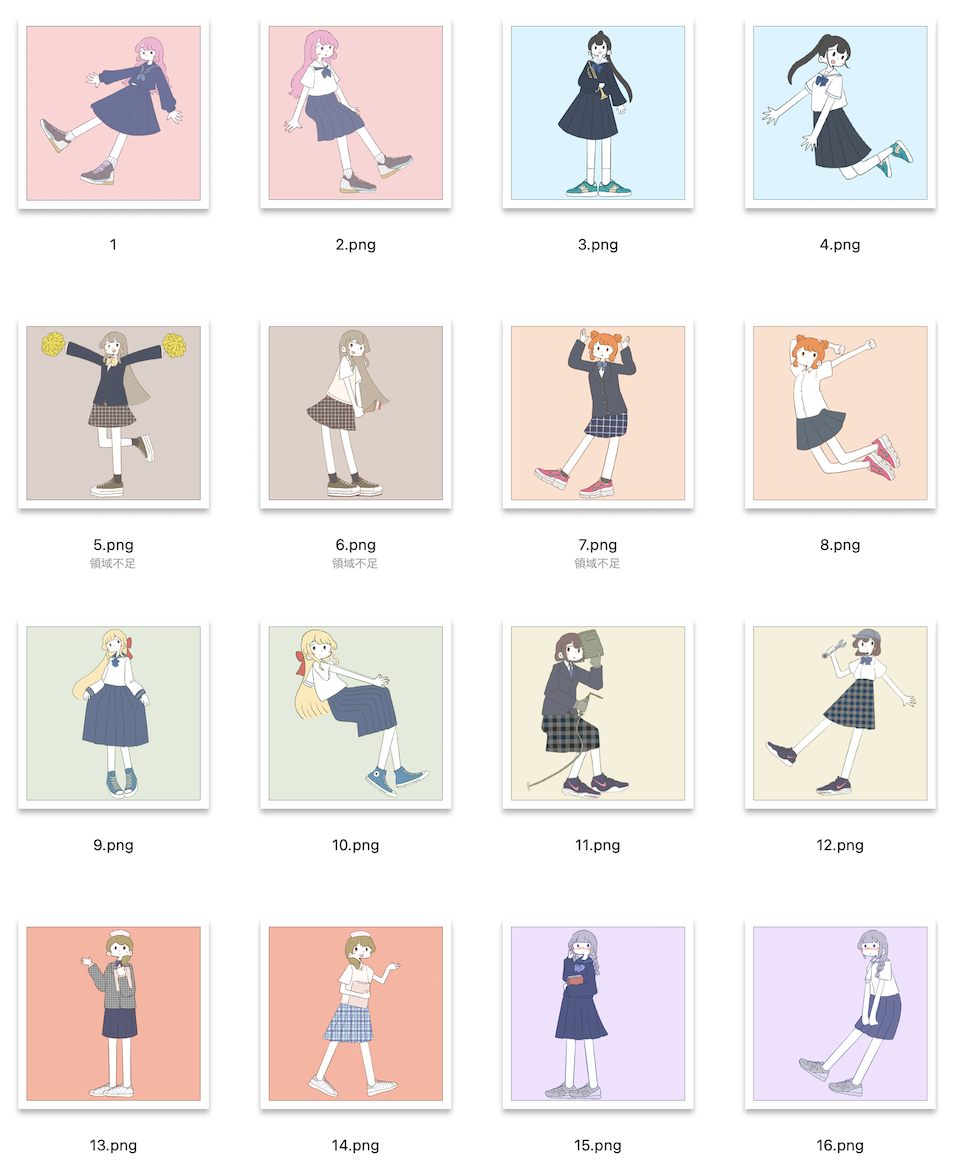 - 夏服・冬服の2種類、合計16枚