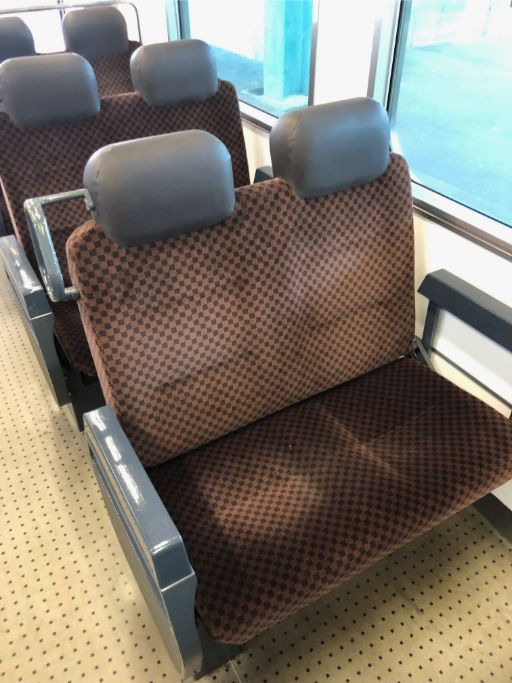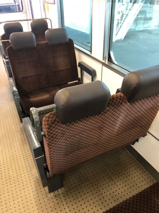 この列車の座席は、進行方向が変わったときに座席を回転する必要がなく、背もたれの部分だけを動かせばよいのでとても便利だと思います。