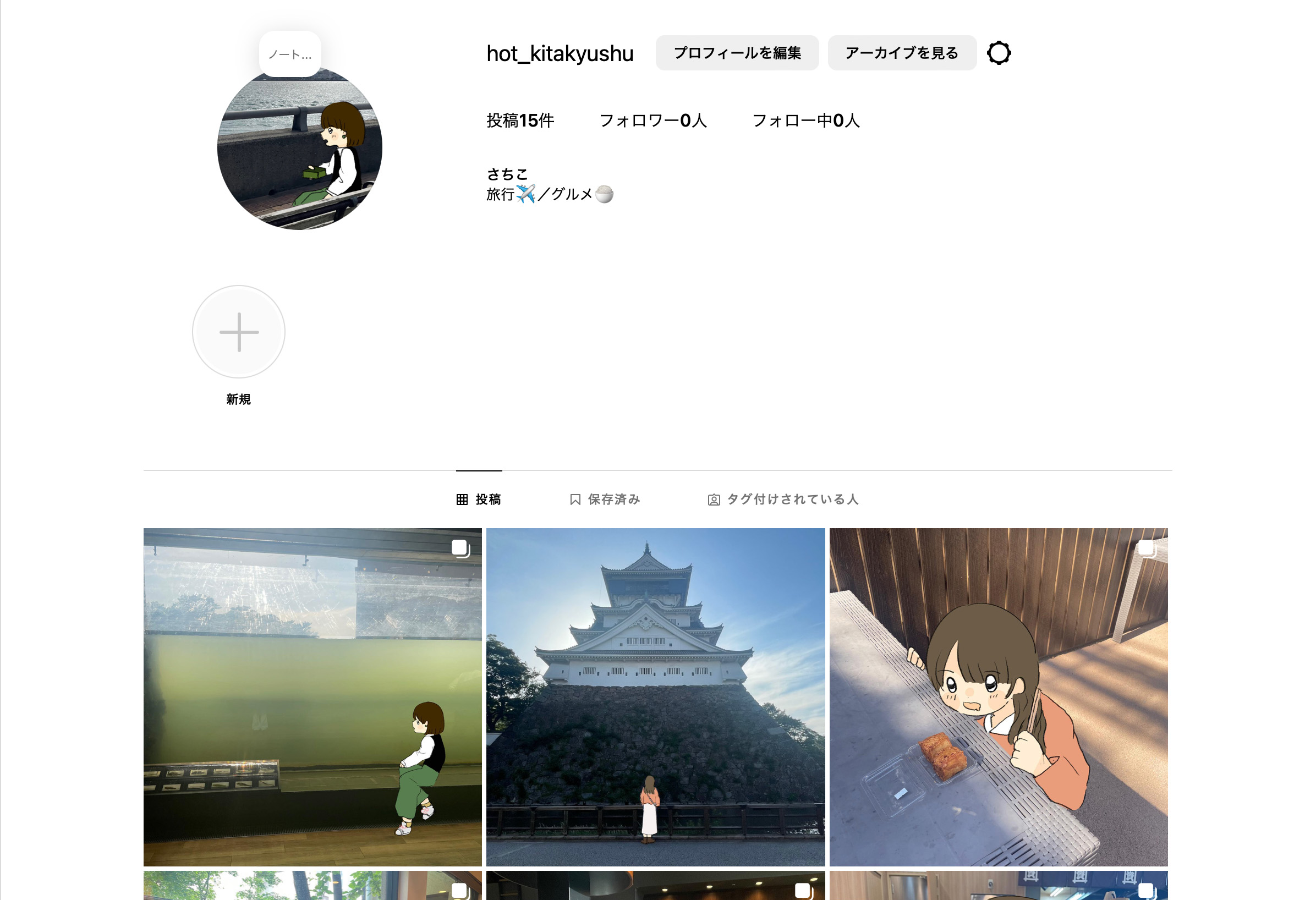 - 本ではキャラクター二人が北九州市を観光している風景を入れ、インスタグラムではそのキャラクターのアカウントを作成することで読み手が面白いと思うものを作る