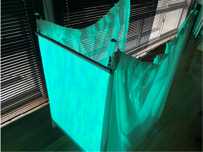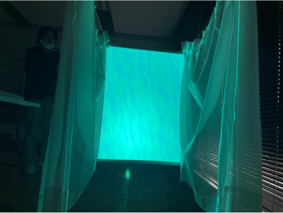 狭く暗い空間でプロジェクションマッピングを行なったことにより、最初にキーワードとして考えていた”現実逃避できる秘密基地のような空間”を演出することができた。また、落ち着いた空間の中にインタラクティブな要素を取り入れることで心地よい刺激が生まれ、より不安や日々の悩みを忘れて過ごすことのできる空間にすることができるということが分かった。