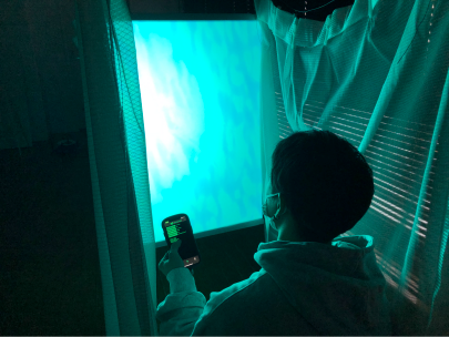狭く暗い空間でプロジェクションマッピングを行なったことにより、最初にキーワードとして考えていた”現実逃避できる秘密基地のような空間”を演出することができた。また、落ち着いた空間の中にインタラクティブな要素を取り入れることで心地よい刺激が生まれ、より不安や日々の悩みを忘れて過ごすことのできる空間にすることができるということが分かった。