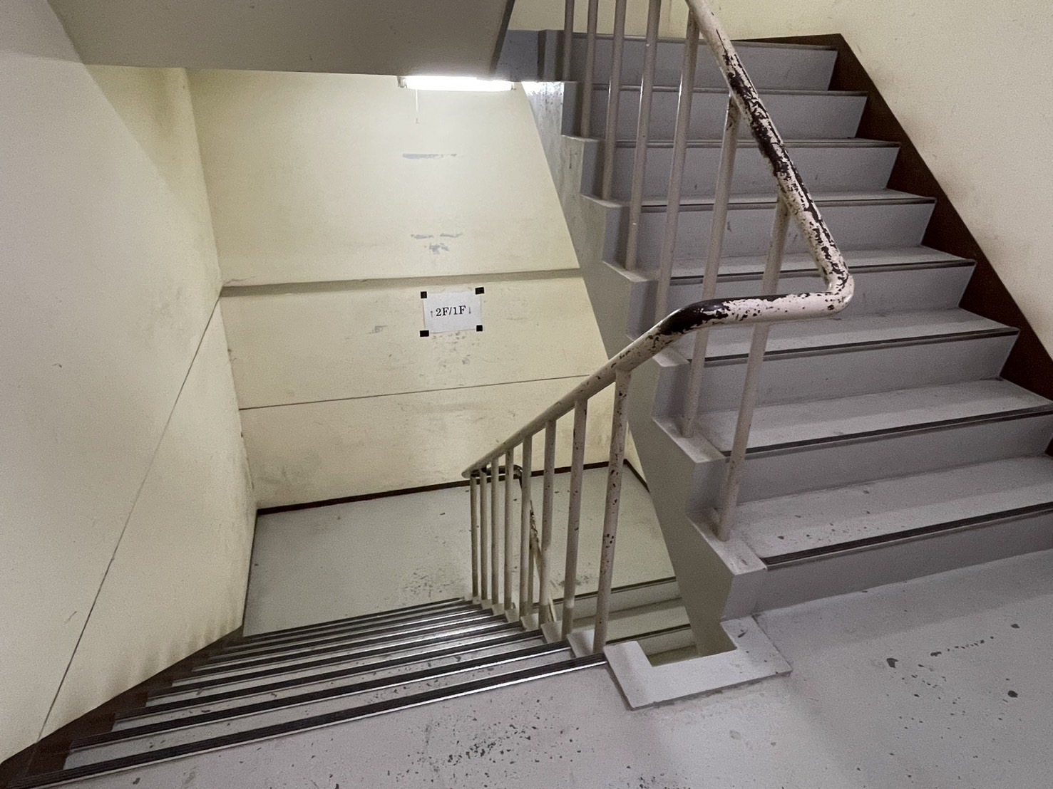 私は、学友棟の階段を急だと感じている。よく躓いたり、落ちそうになったりするからだ。学友棟内の階段は、手すりが片側しかないため、中央に手すりを設置するなどの対策を行うべきだと考える。