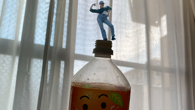 自分を切り取って、今ハマっているオレンジジュースに立たせてみました。