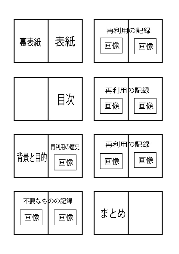 目的:この冊子を通して、家にある不要物を減らす活用方法を知ってもらい、