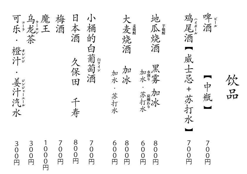 テーマ決定:メニュー表制作