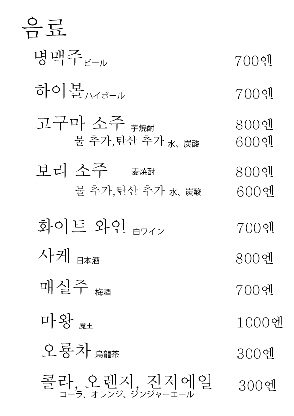 外国語のメニューです。