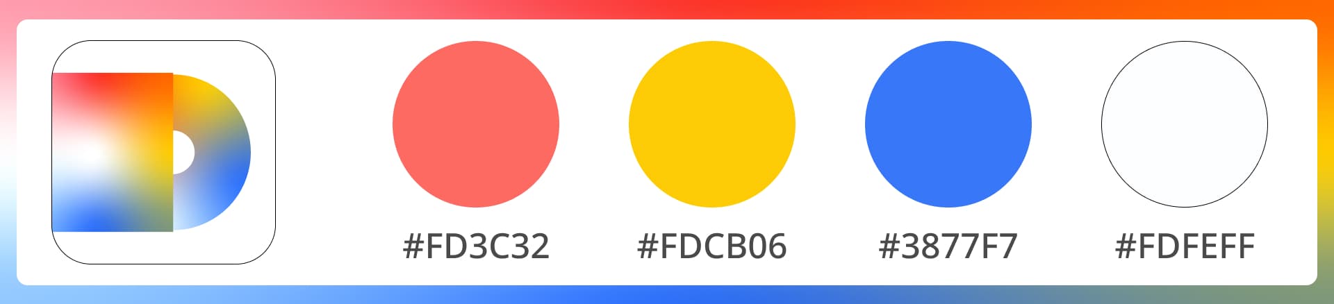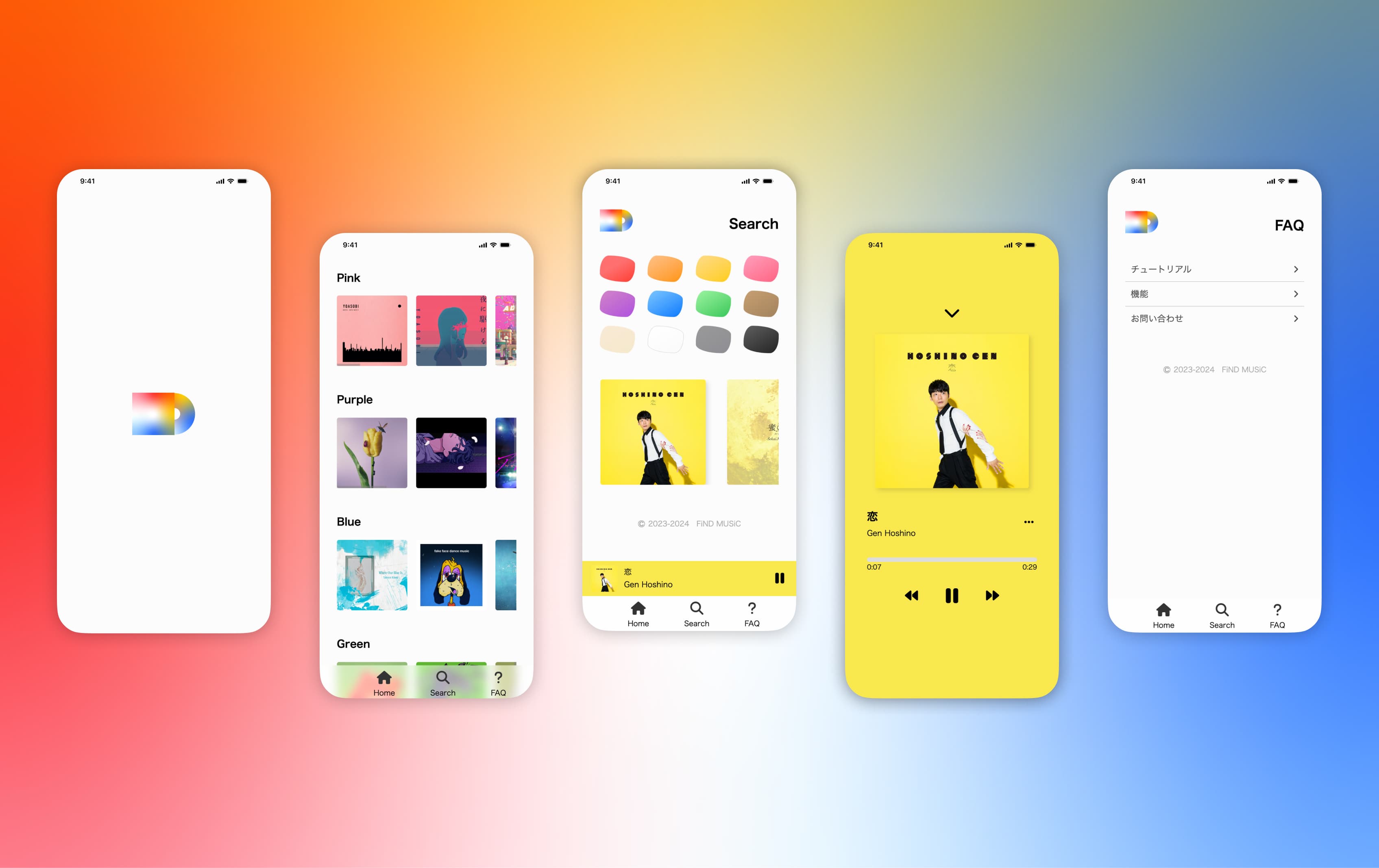 ロゴマークはジャケット画像の色から音楽を探す様子を#FD3C32、#FDC806、#3877F7、#FDFEFFの4色のグラデーションで表現している。このロゴマークはアプリ内のホーム画面遷移のボタンとfaviconに使用する。